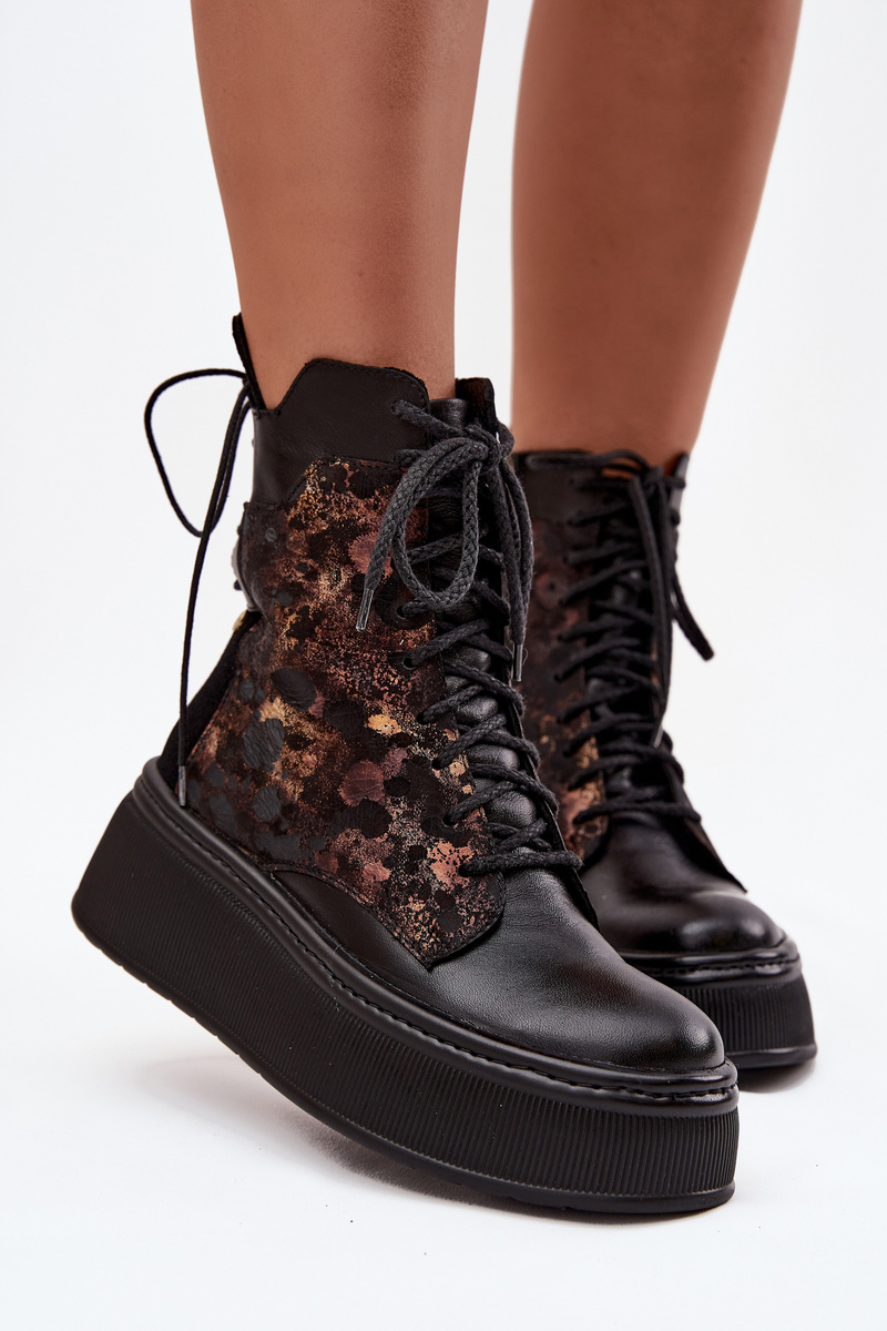 Damskie Botki Platforma Skóra Naturalna Czarne Maciejka 07086-01