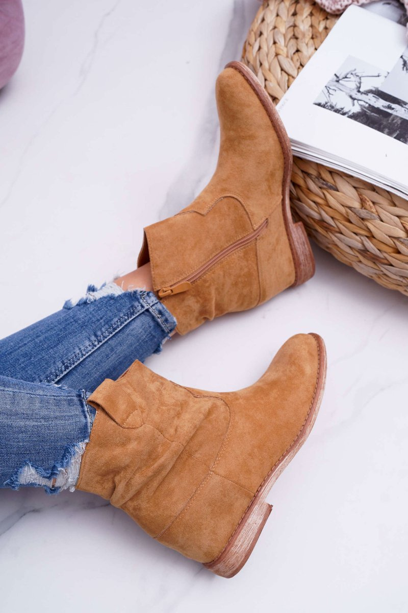 Damskie Botki Saszki Na Koturnie Camel Ellen