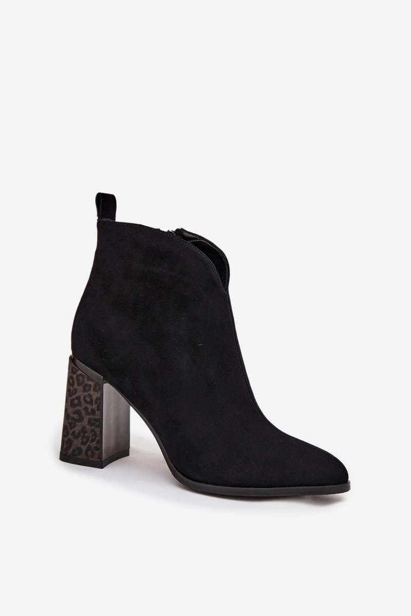 Damskie Botki Skóra Naturalna Obcas Słupek Z Panterką Czarne Zivella
