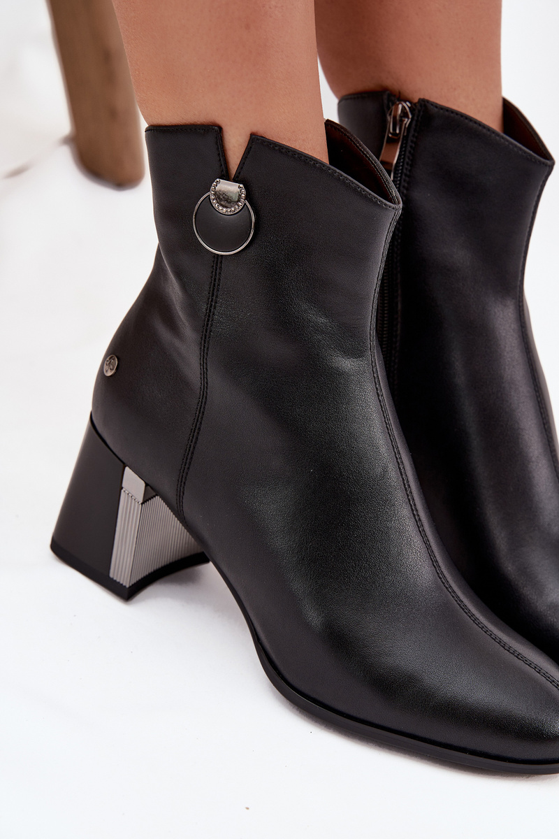 Damskie Botki Skóra Naturalna Ocieplane Na Słupku Czarne Maciejka K7203-04