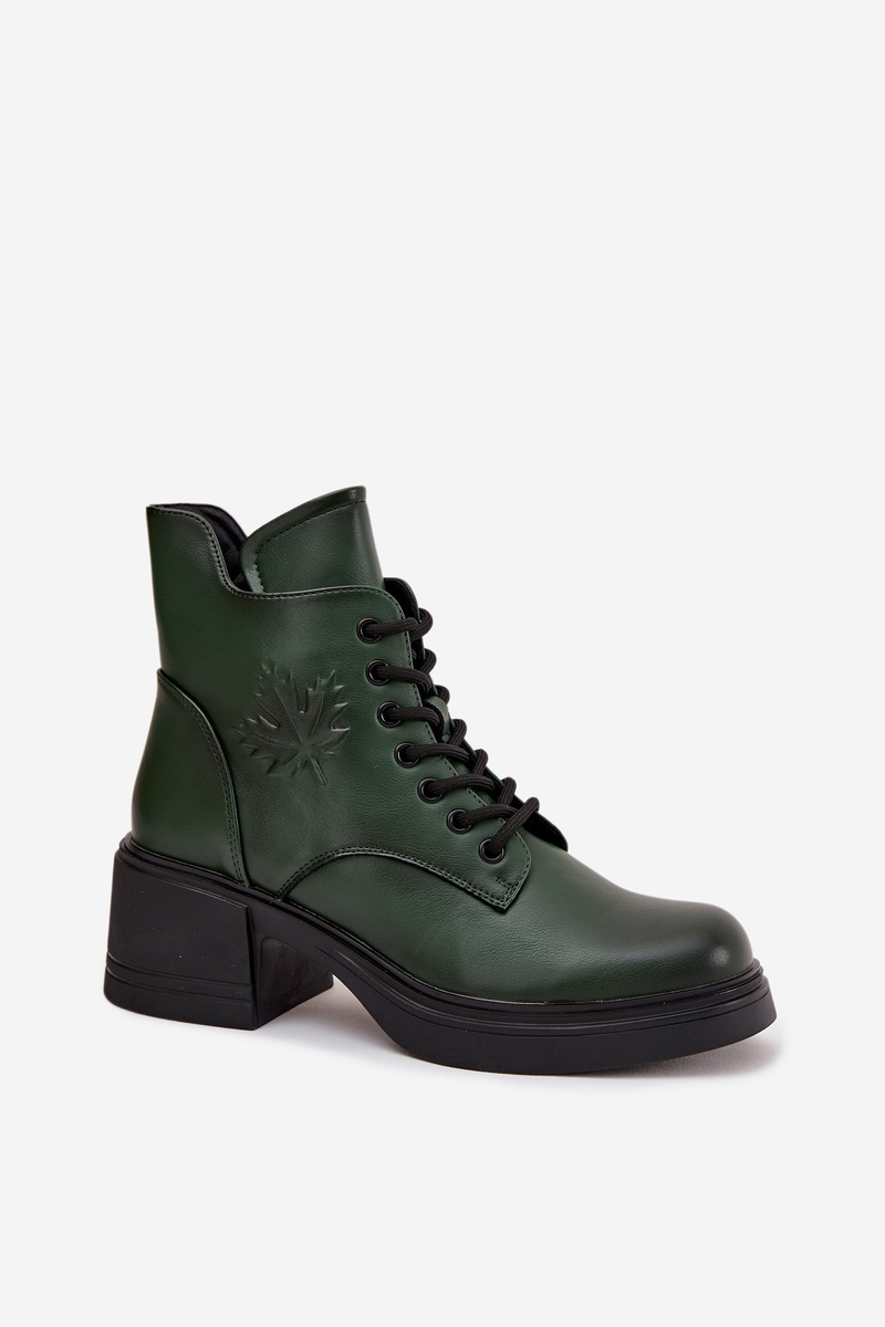 Damskie Botki Skóra Naturalna Ocieplane Obcas Klocek Ciemnozielone Vinceza 39950