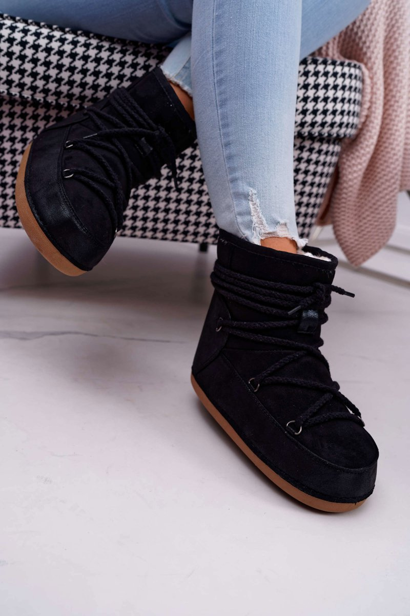 Damskie Botki Śniegowce Ocieplane Futerkiem Czarne Veme