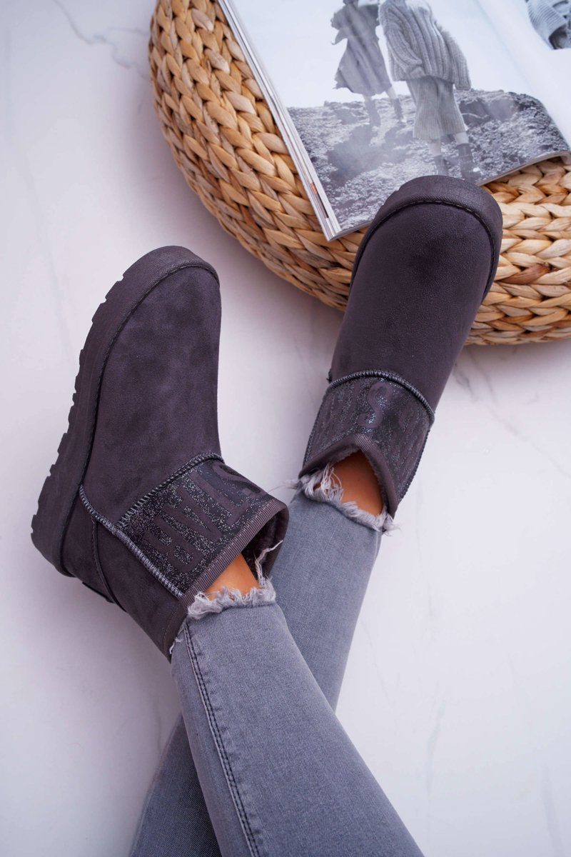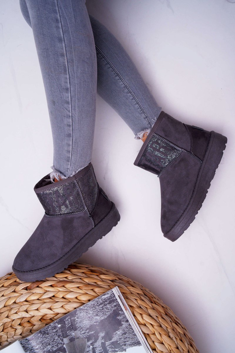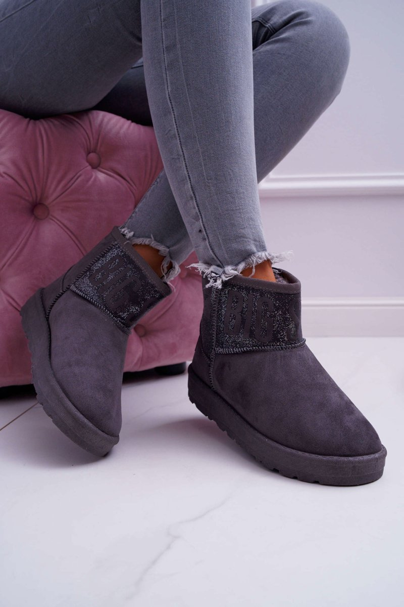 Damskie Botki Śniegowce Ocieplane Szare Big Star EE274262