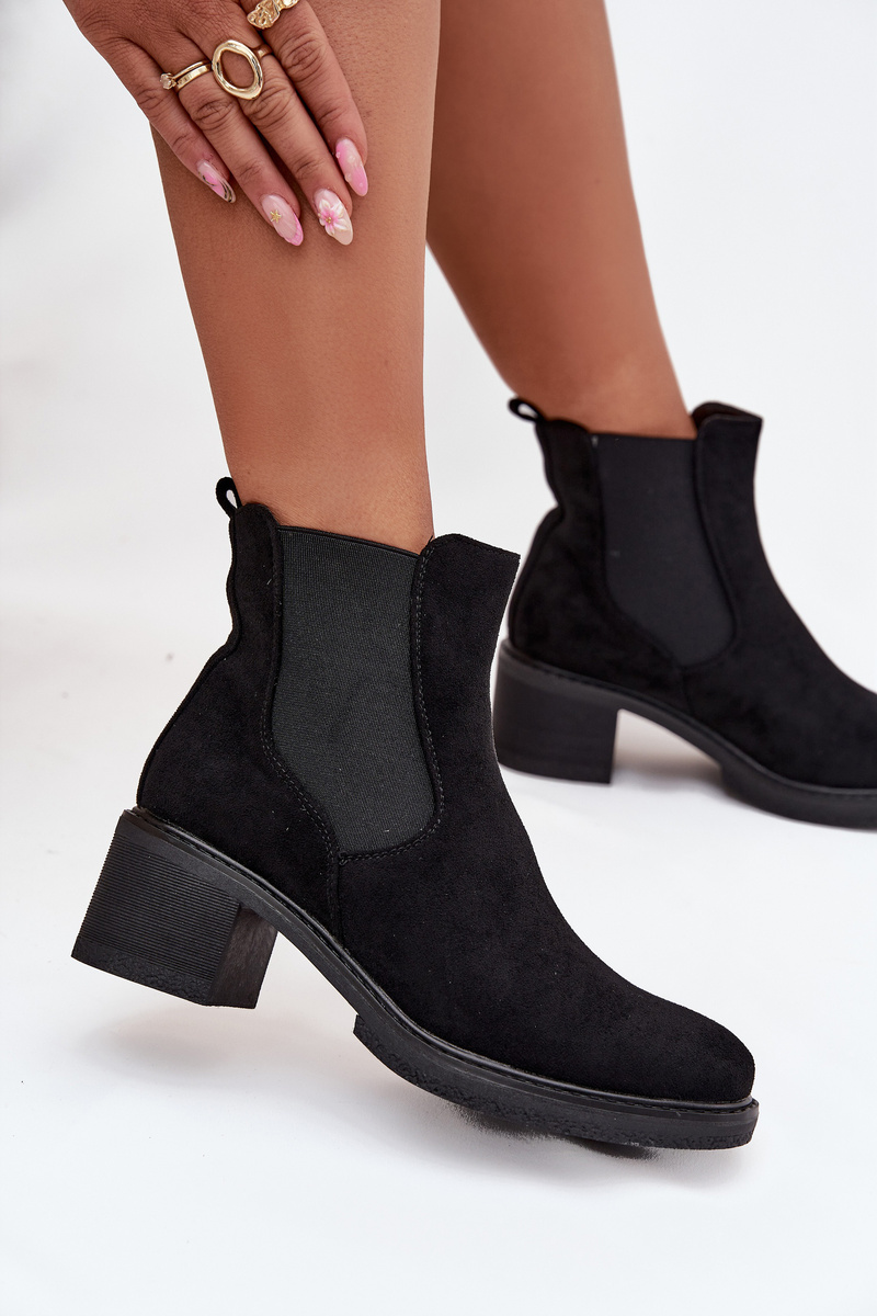 Damskie Botki Sztyblety Obcas Klocek Czarne Luvina