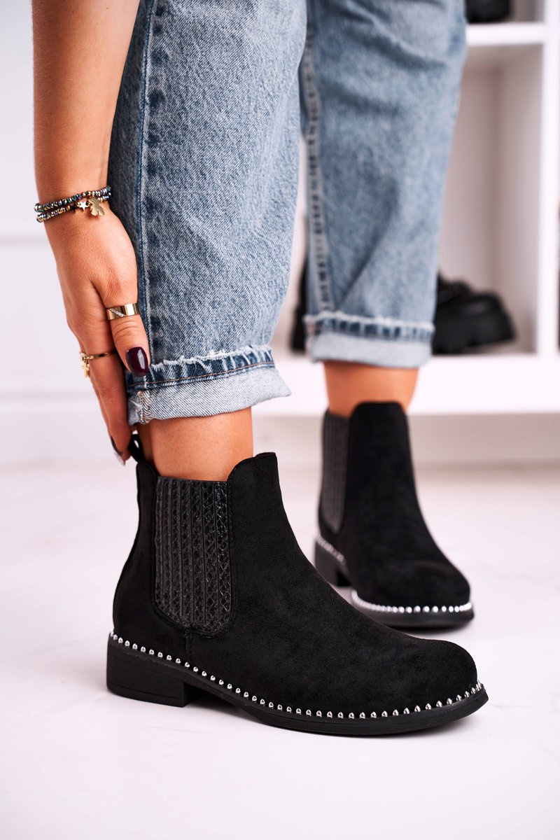Damskie Botki Sztyblety Z Dżetami Zamszowe Czarne Meagan