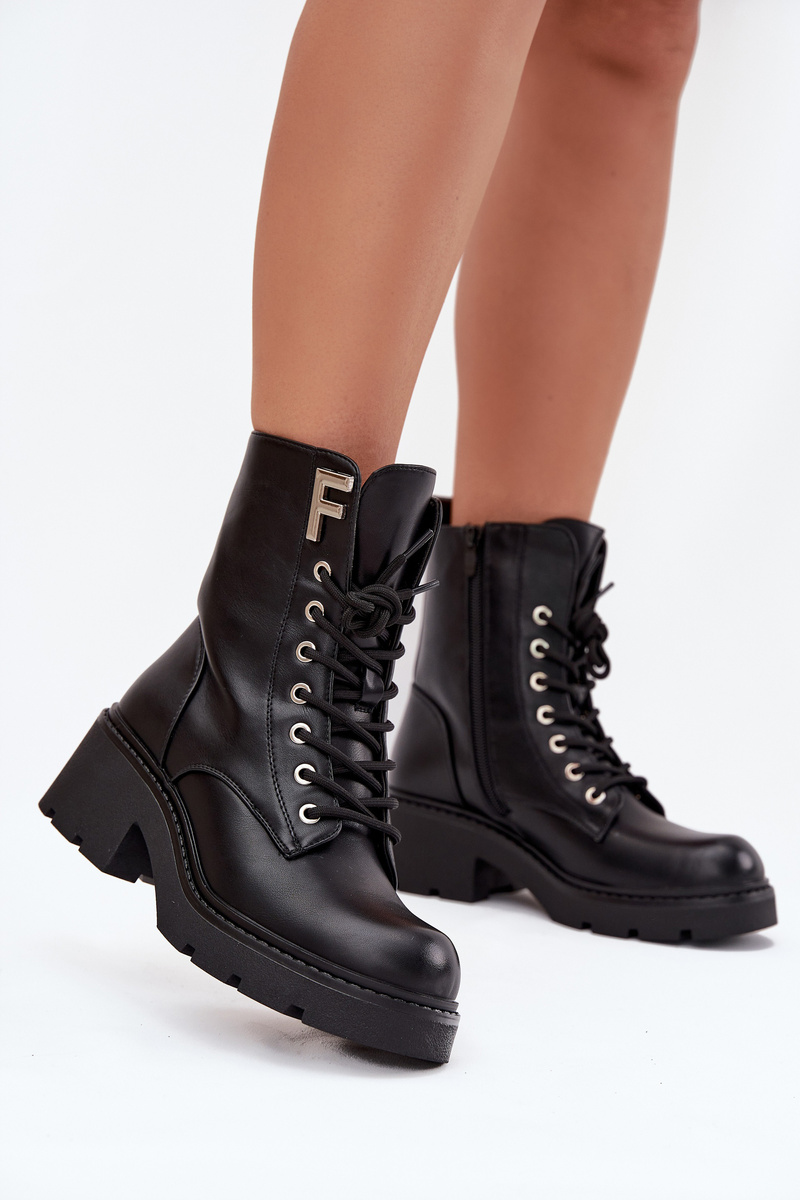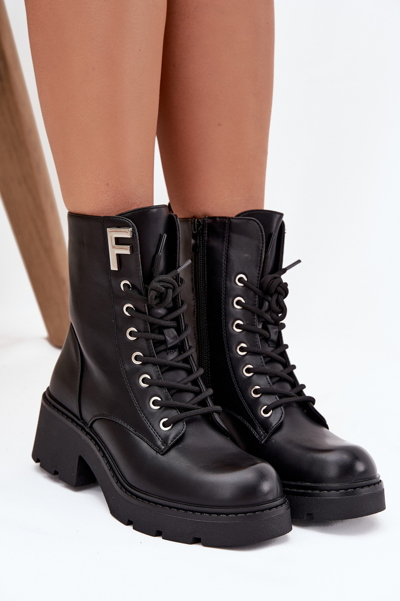 Damskie Botki Workery Ocieplane Obcas Klocek Litera F Lurina