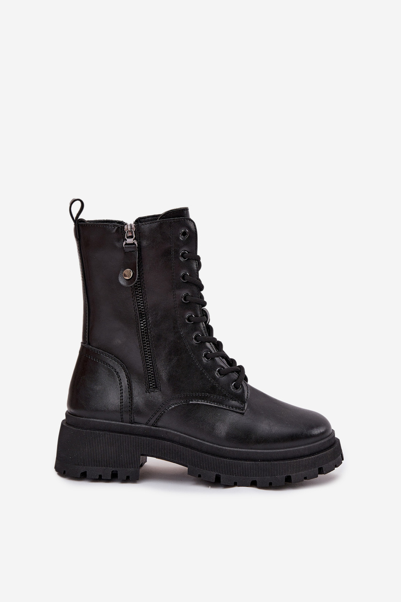 Damskie Botki Workery Ocieplane Podwójny Suwak Czarne Perlina