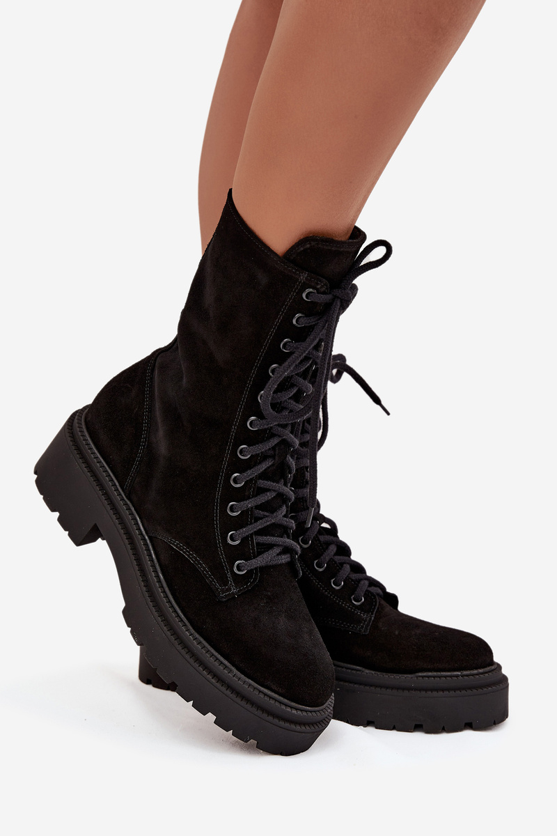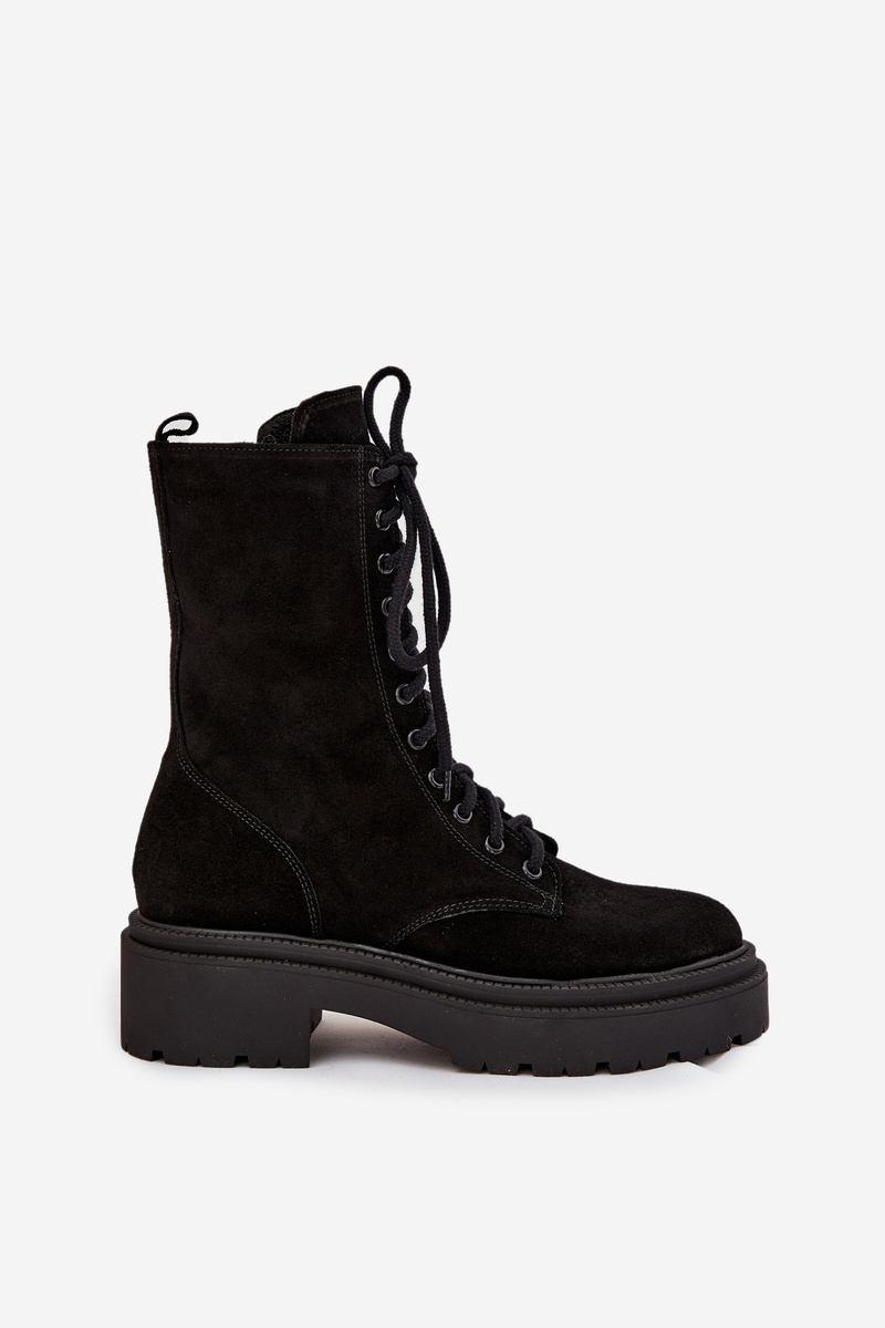 Damskie Botki Workery Ocieplane Zamszowe Czarne Zazoo 4213
