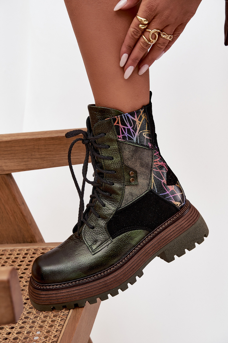 Damskie Botki Workery Platforma Skóra Naturalna Ciemnozielone Maciejka 07104-09