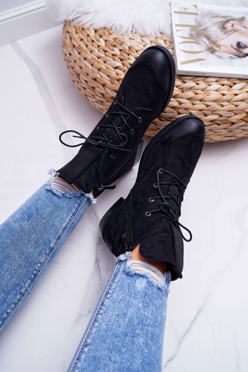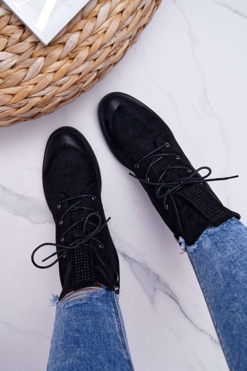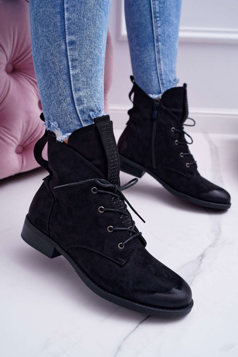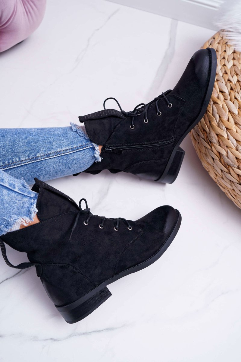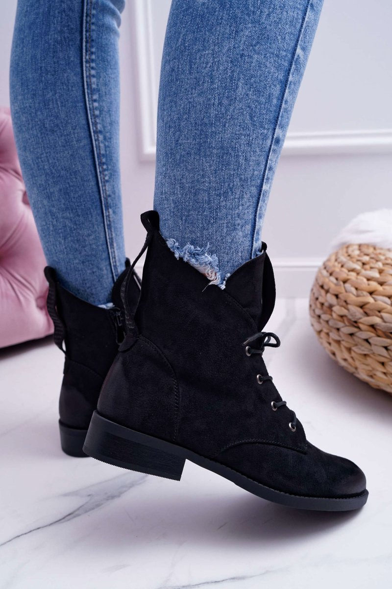 Damskie Botki Wysokie Czarne Zamszowe Barski 75-13