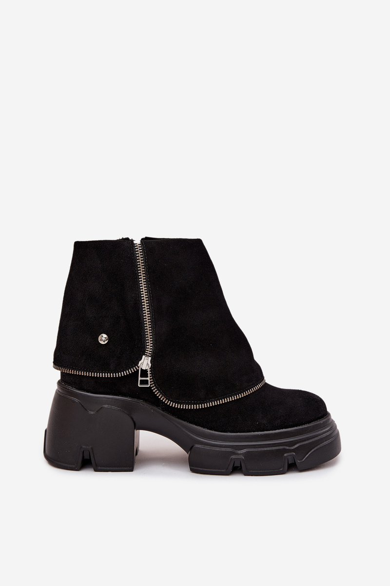 Damskie Botki Wywinięta Cholewka Skóra Naturalna Czarne Maciejka 07145-01