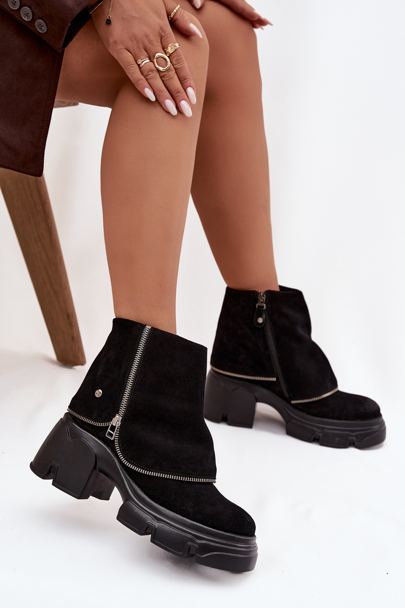 Botki stanowią świetne dopełnienie zarówno eleganckich, jak i sportowych stylizacji. Możesz założyć je do dzianinowej sukienki, ale także do jeansów. Damskie botki Maciejka wykonane z naturalnej skóry to stylowe obuwie, które łączy modny wygląd z komfortem noszenia. Osadzone na platformie i stabilnym obcasie typu klocek gwarantują wygodę oraz pewność kroków. Efekt wywiniętej cholewki nadaje im oryginalnego charakteru i sprawia, że wyróżniają się na tle klasycznych modeli. Miękkie ocieplenie wewnątrz dba o ciepło i komfort w chłodniejsze dni, a praktyczny zamek ułatwia zakładanie. To botki, które doskonale sprawdzą się w jesienno-zimowych stylizacjach, dodając im elegancji i niepowtarzalnego stylu.