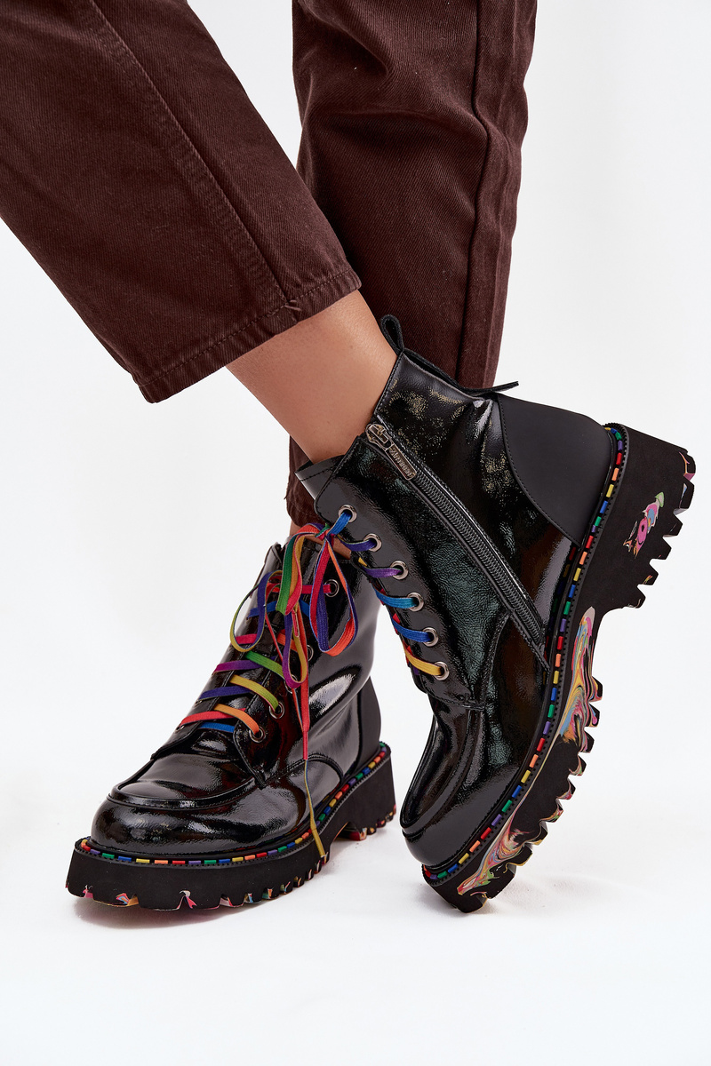 Damskie Botki Z Lakierowanej Skóry Czarne Artiker 57C0064