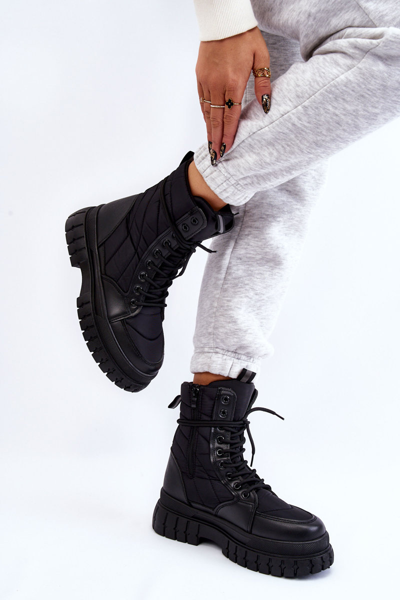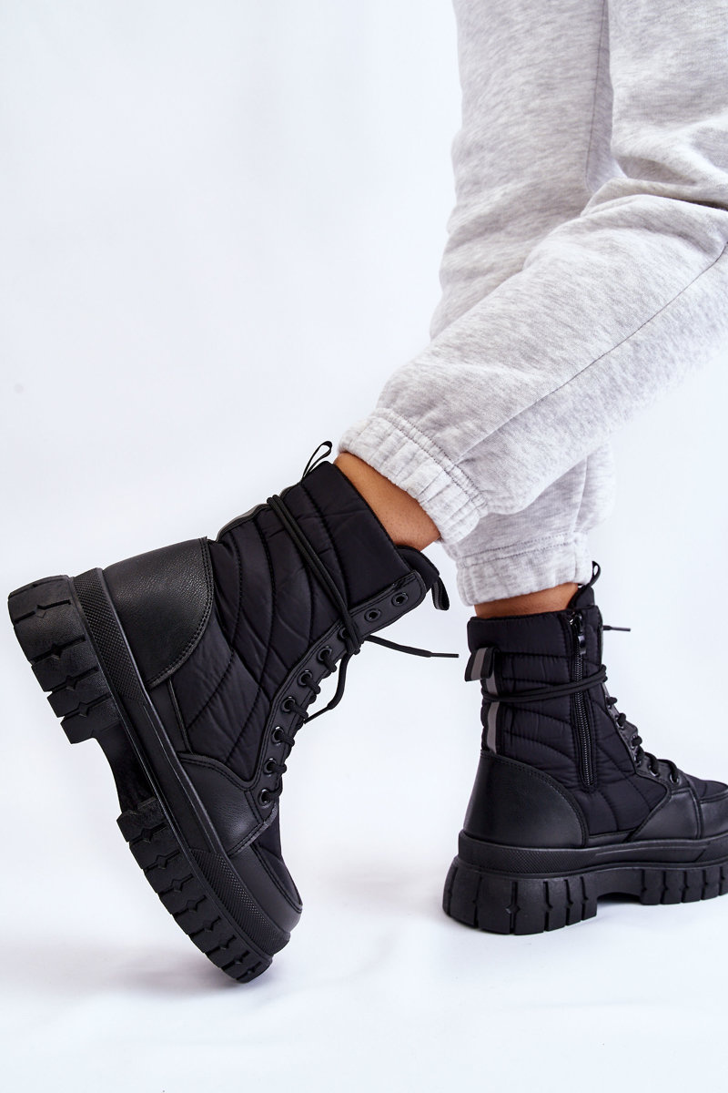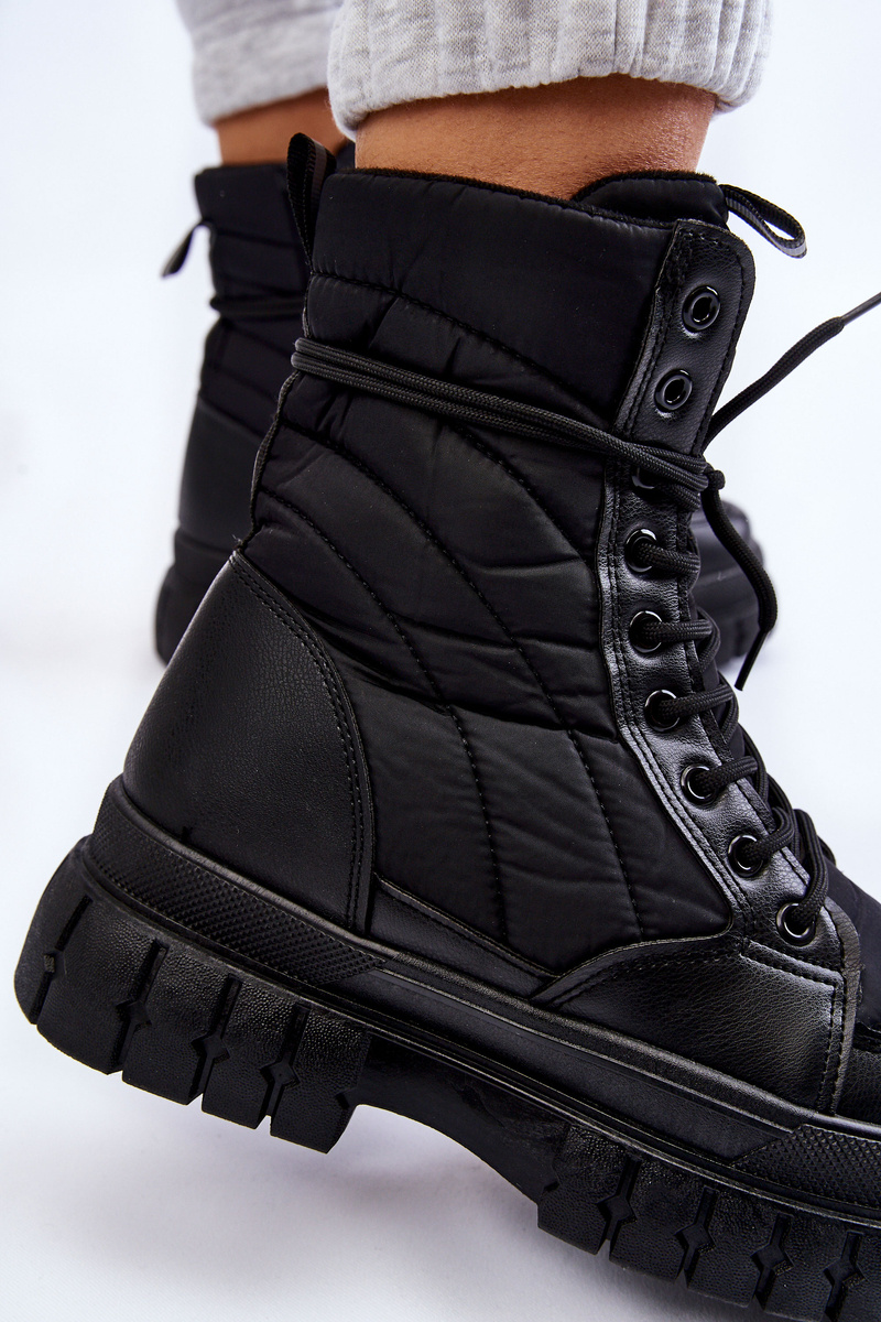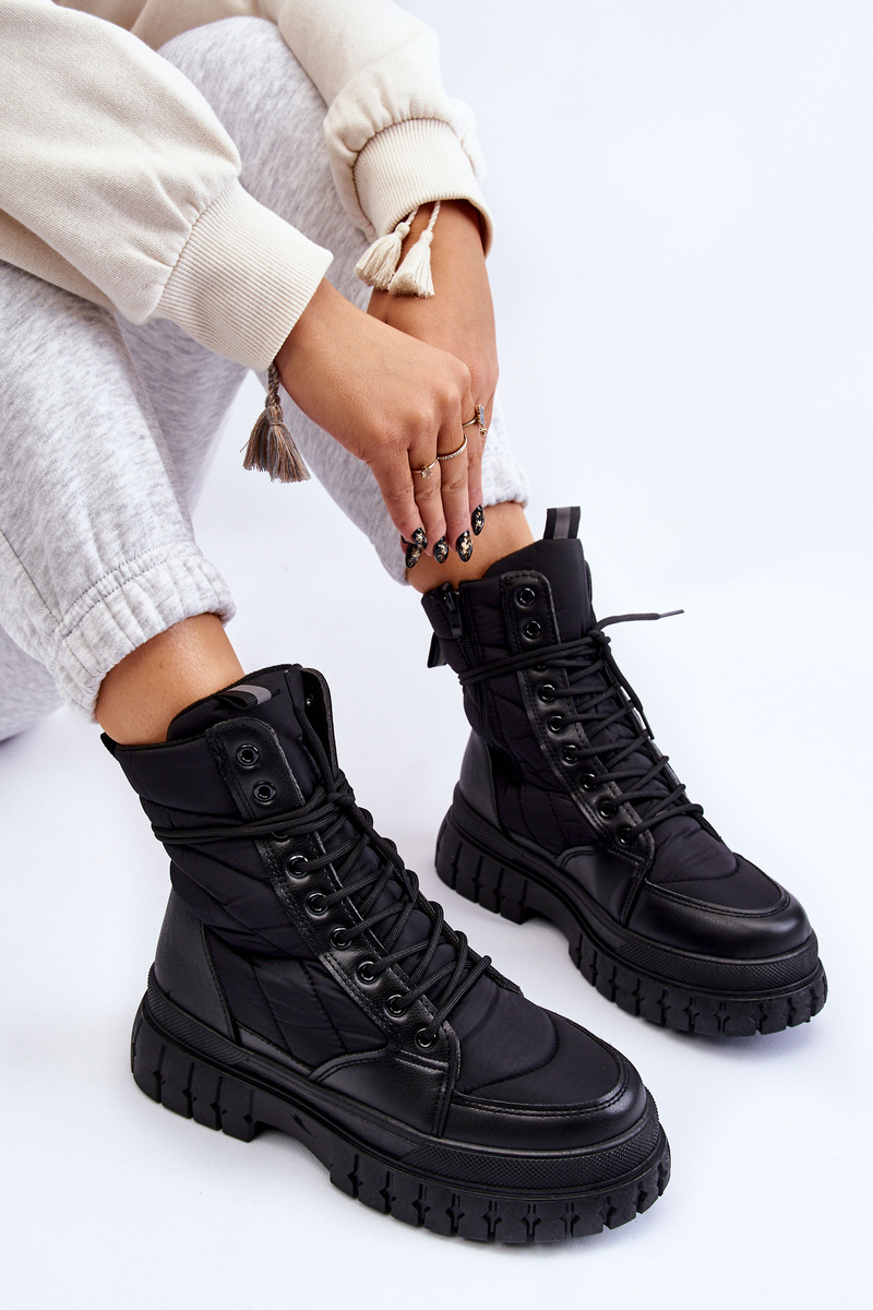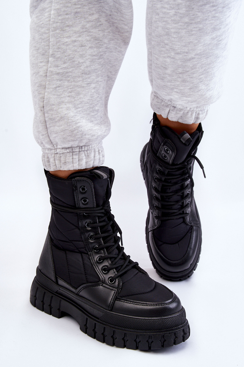 Damskie Botki Z Ociepleniem Sznurowane Czarne Ariadna