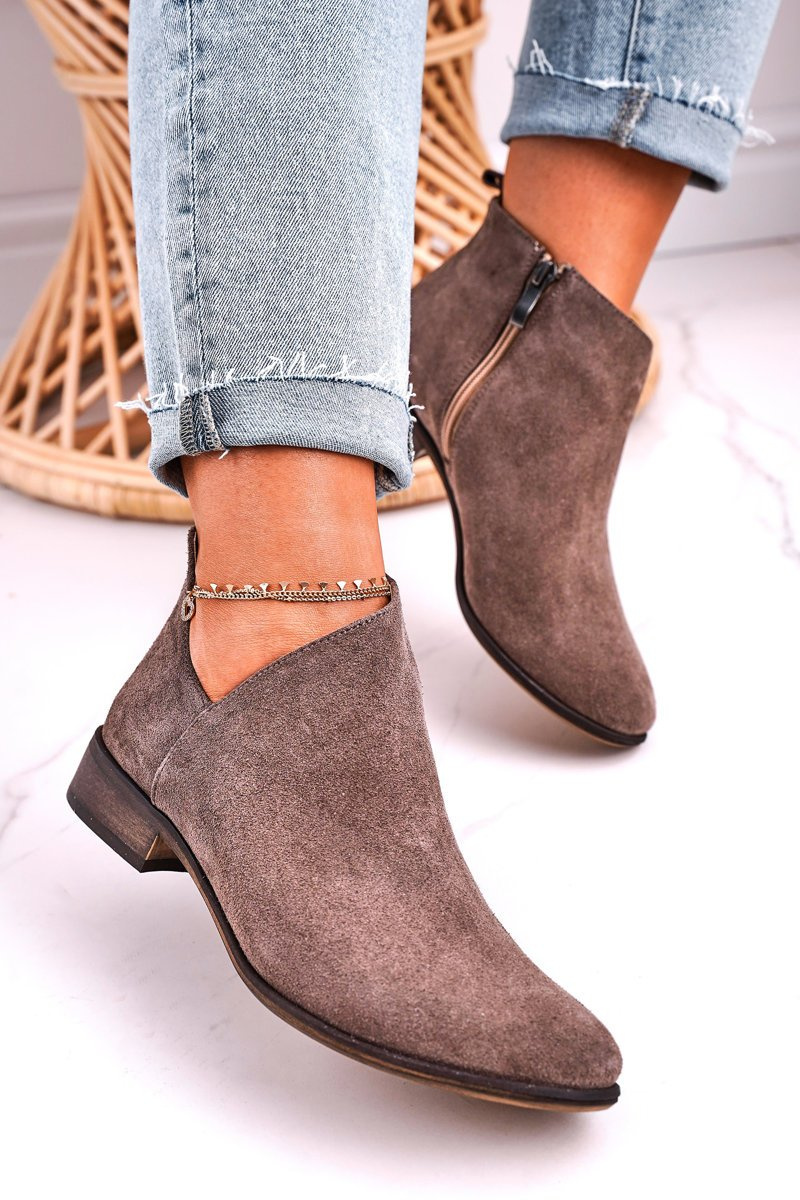 Damskie Botki Z Wycięciem Zamszowe Brązowe Clarence