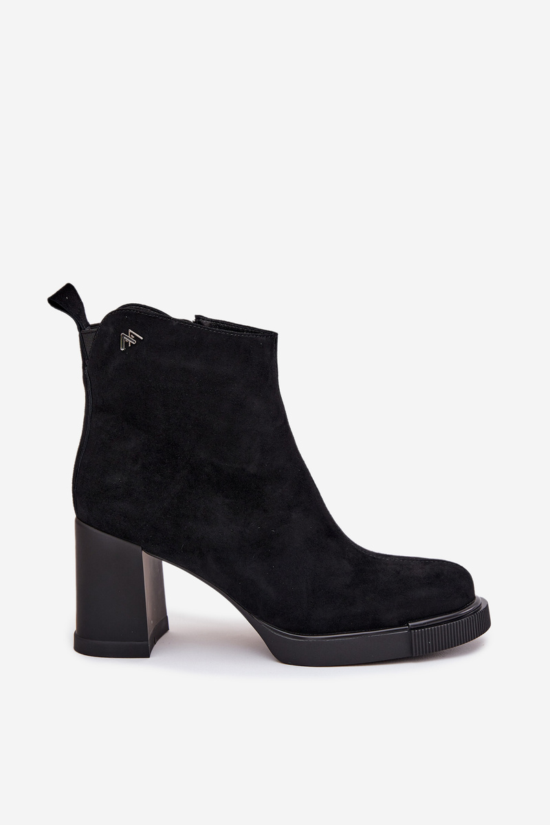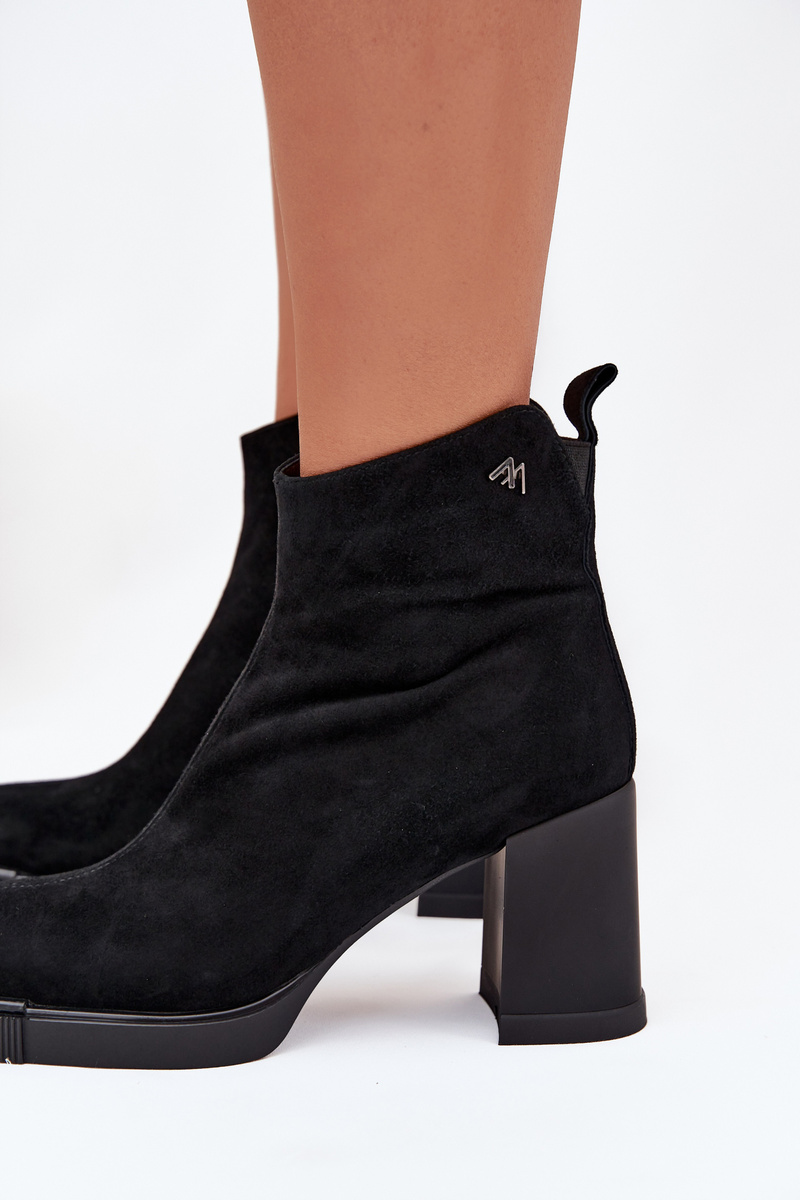 Damskie Botki Zamszowe Skórzane Obcas Słupek Czarne Vinceza 91142
