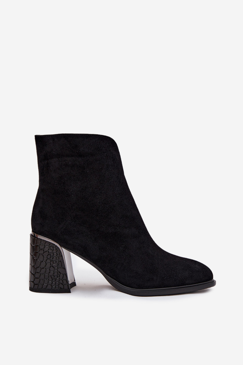 Damskie Botki Zamszowe Słupek Z Tłoczeniem Ocieplane Czarne Vinceza 66801