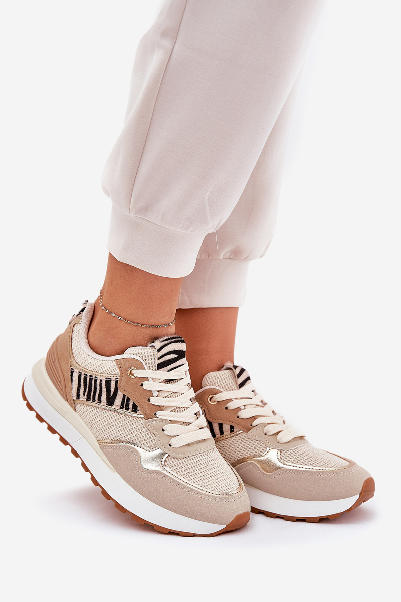 Damskie Buty Sportowe Sneakersy Platforma Zebra Beżowe Davinara