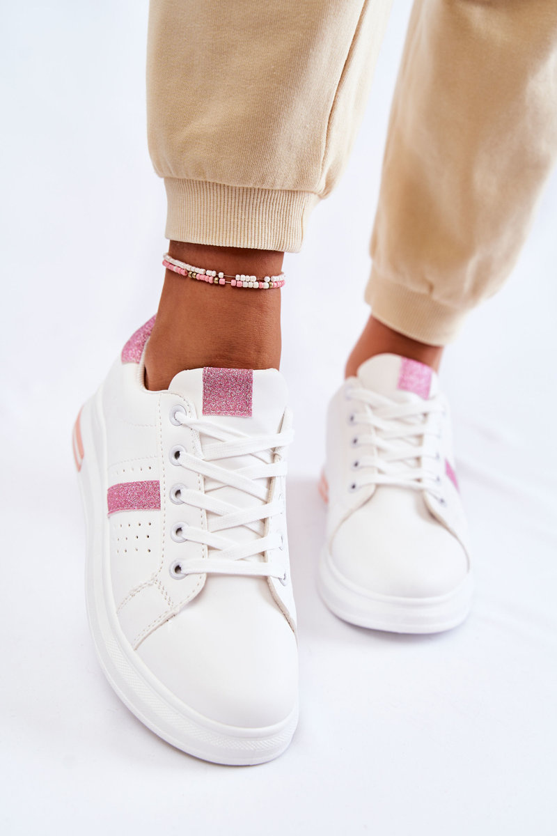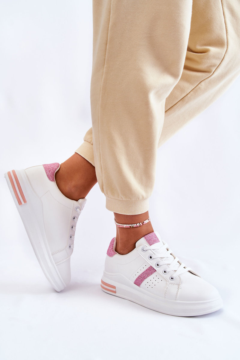 Damskie Buty Sportowe Wiązane Biało-Różowe Otylia