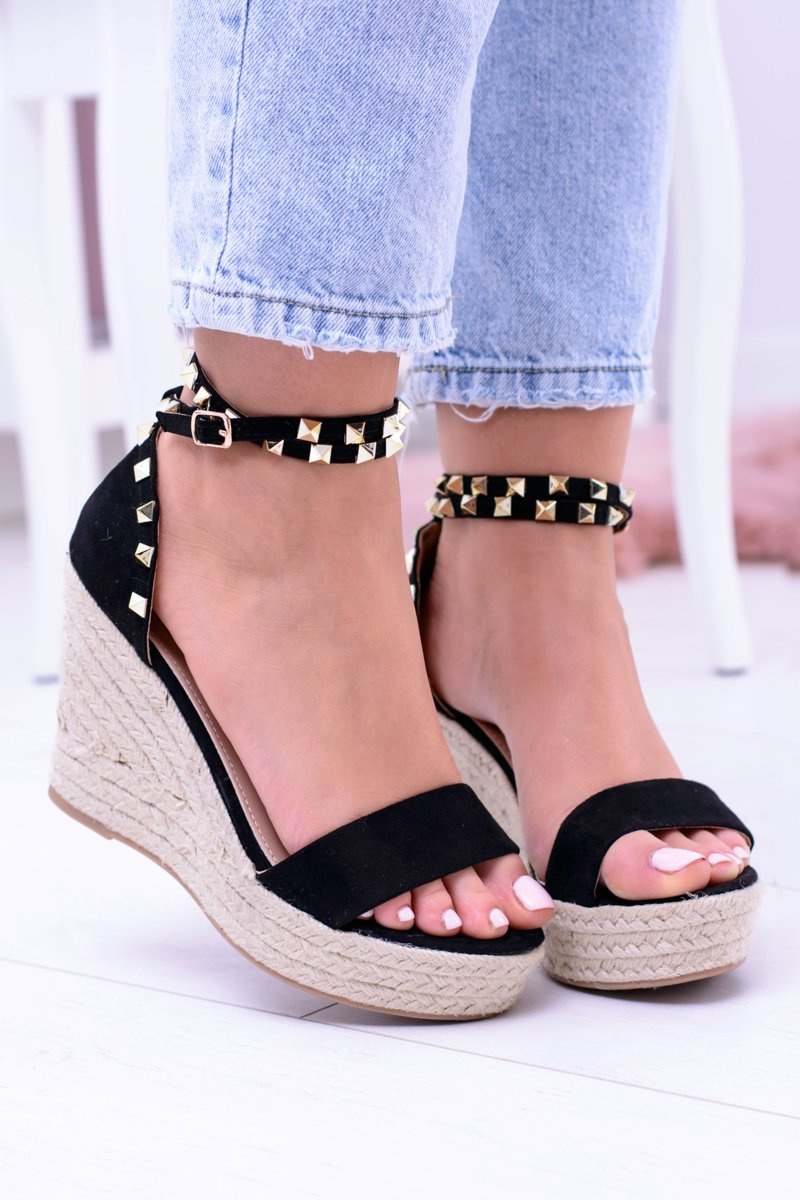 Damskie Czarne Sandały Na Koturnie Espadryle Coco