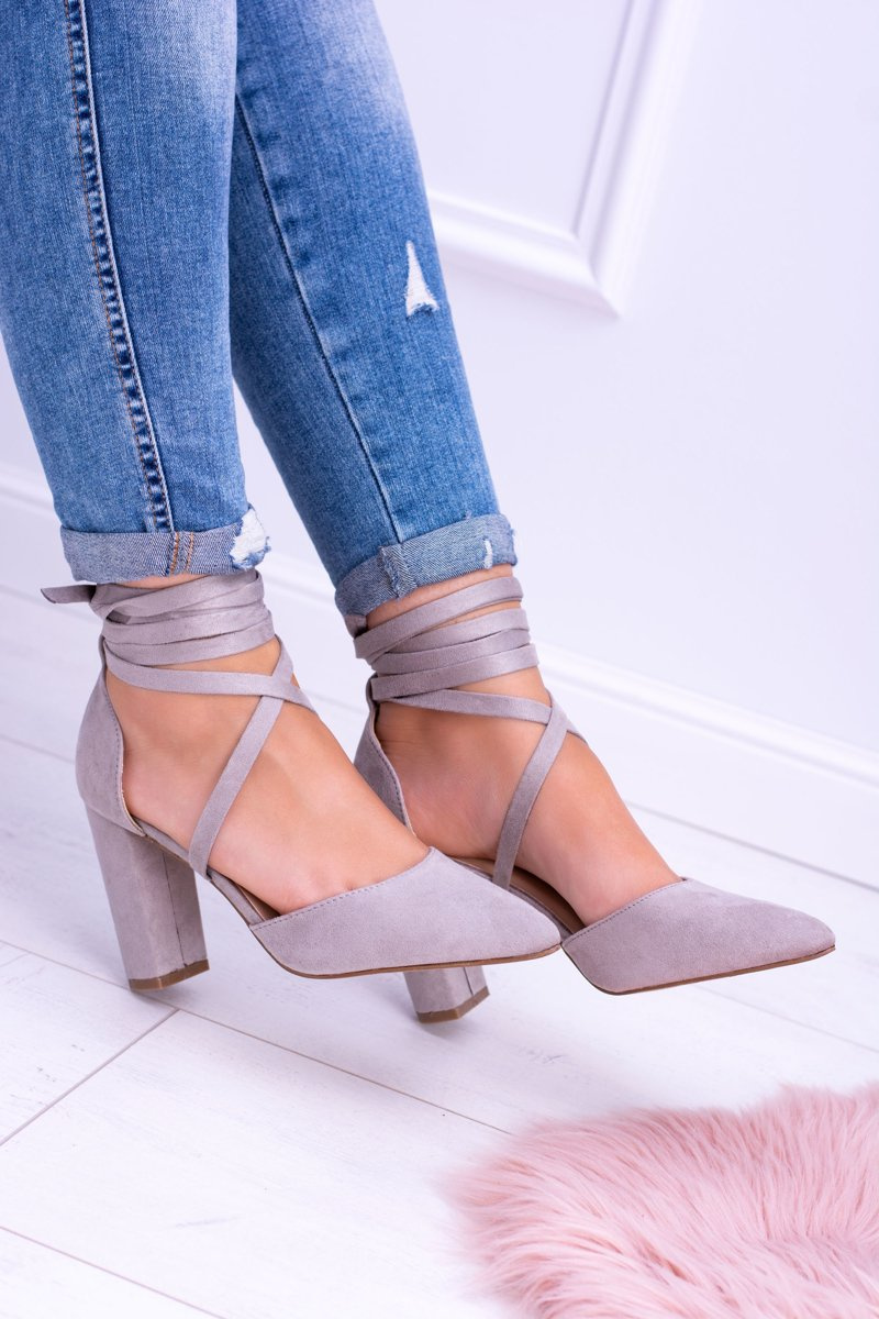 Damskie Czółenka Na Słupku Wiązane Szare Demmi