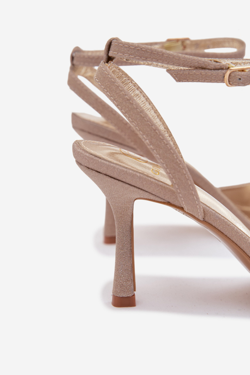 Damskie Eko Skórzane Sandały Na Szpilce Złote Brisora