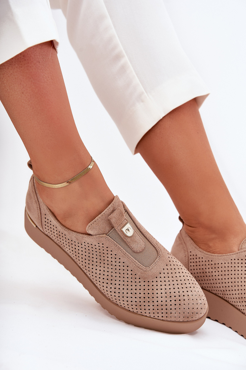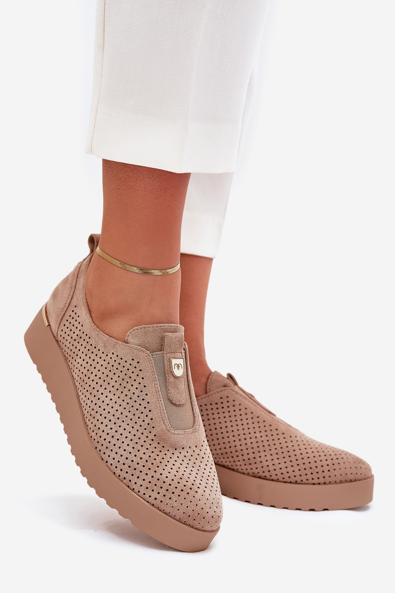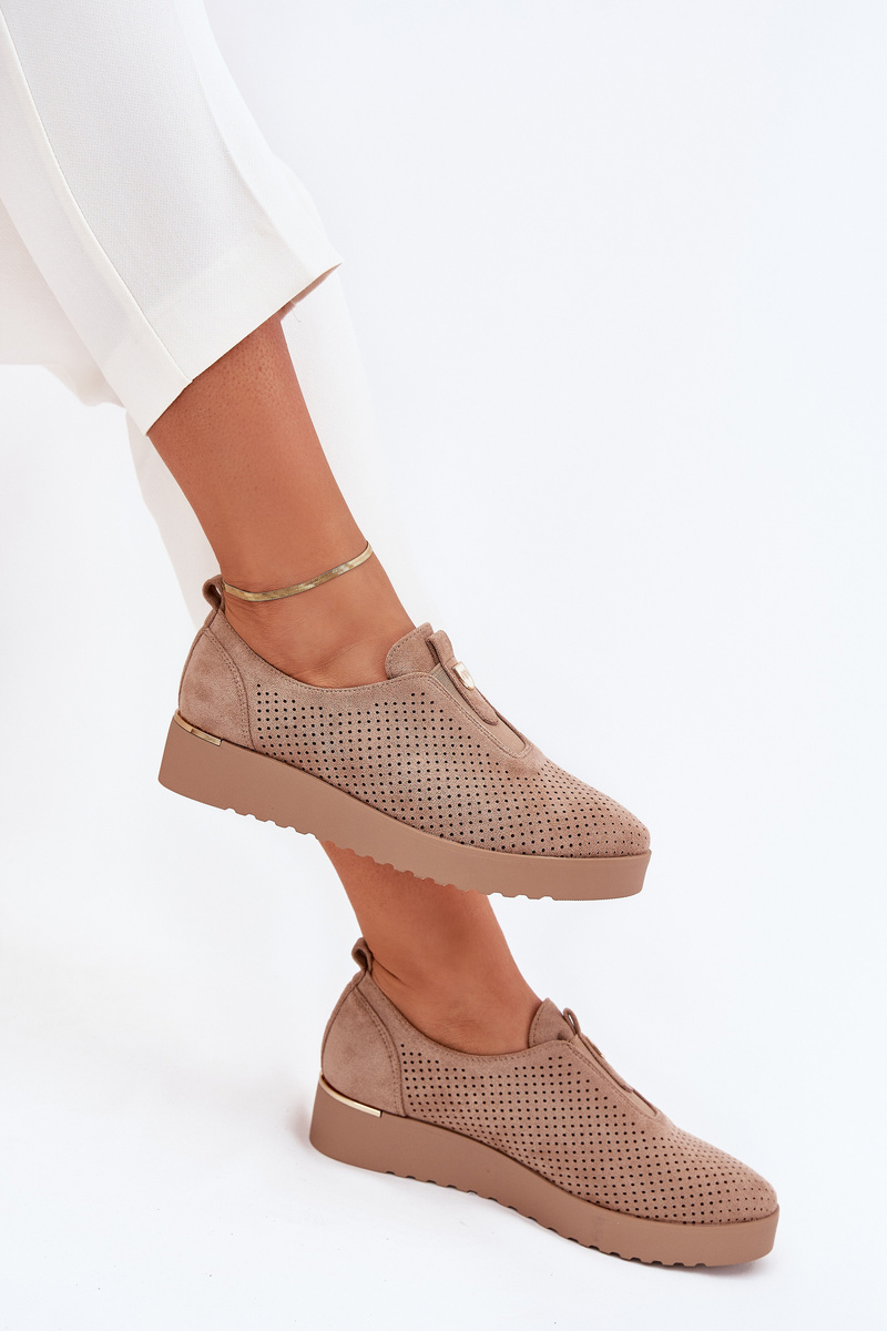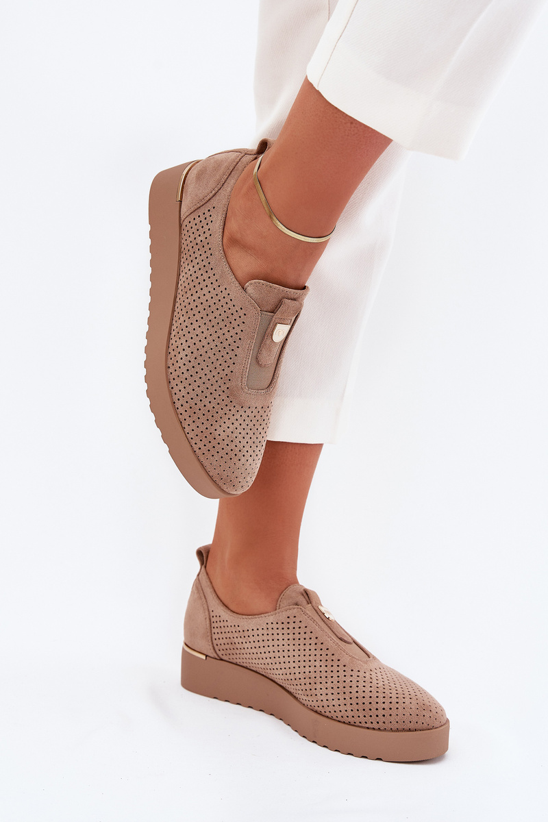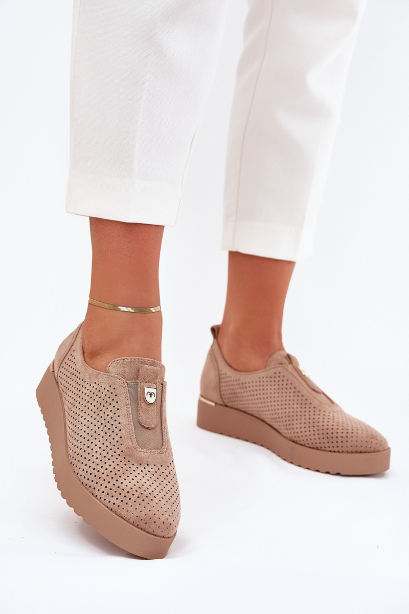 Damskie Eko Zamszowe Półbuty Na Platformie Ciemnobeżowe Aviara