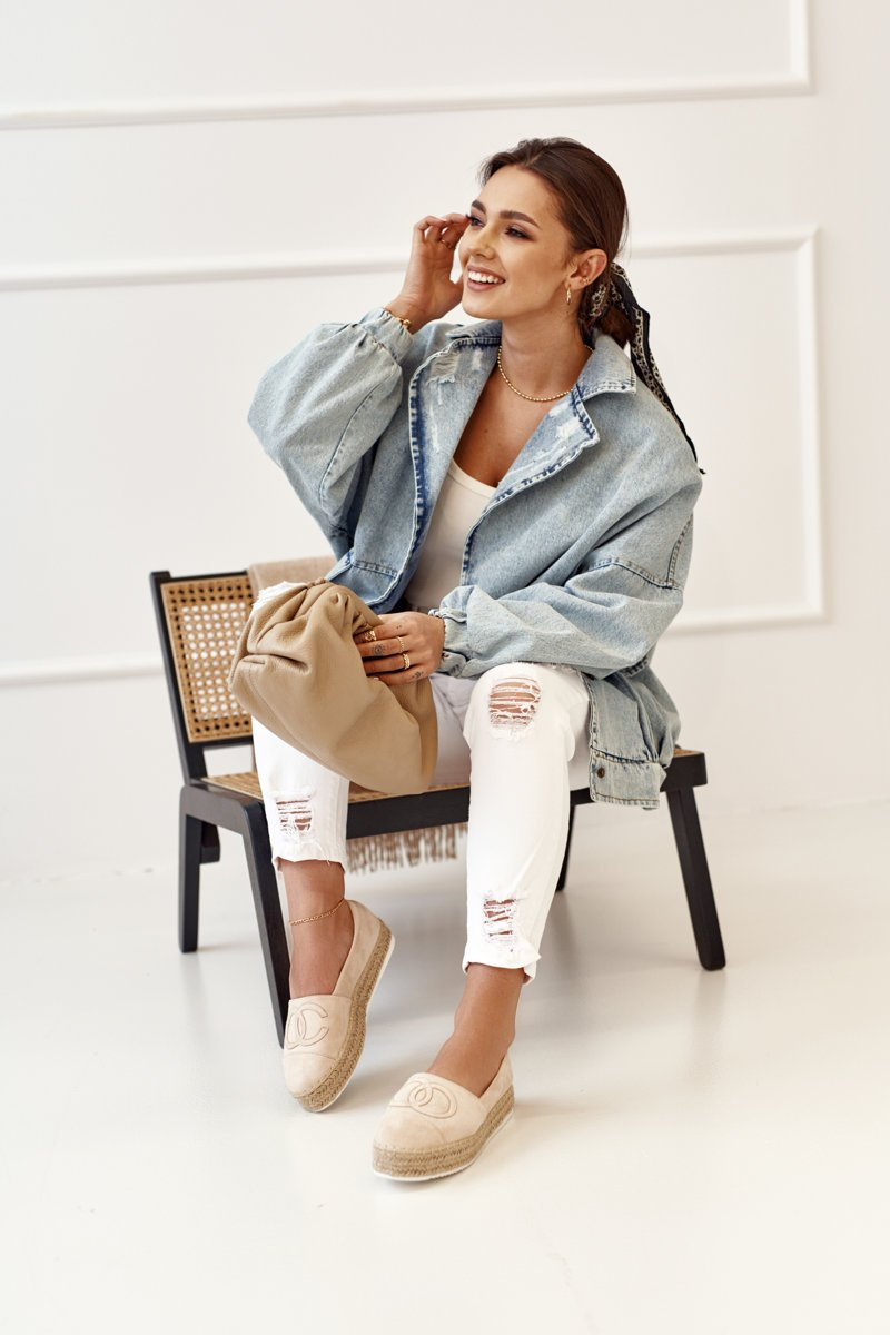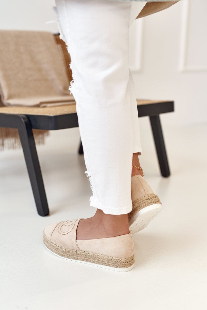 Damskie Espadryle Na Słomkowej Platformie Beżowe Febi