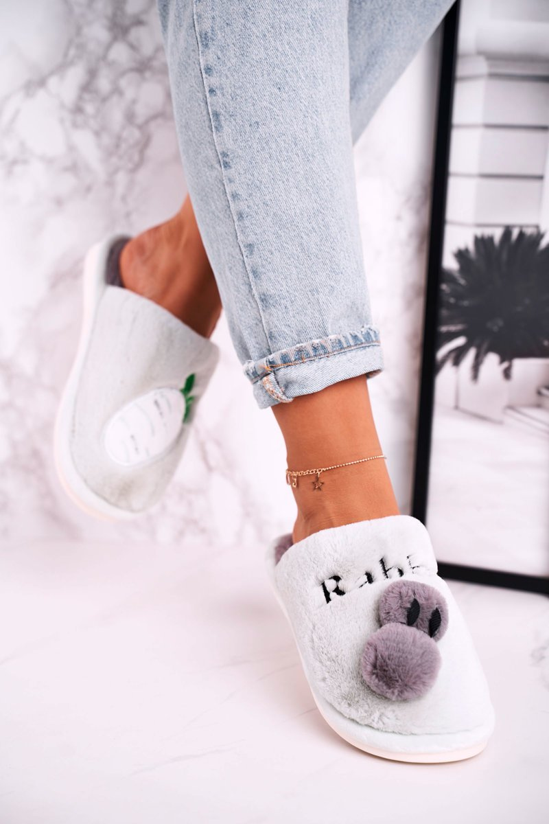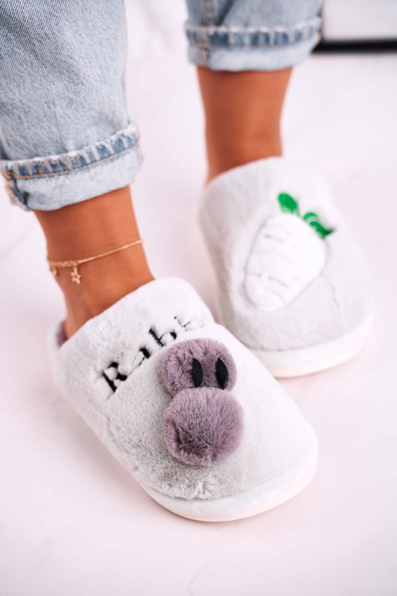 Damskie Futrzane Papcie z Królikiem I Marchewką Zielone Follow Me