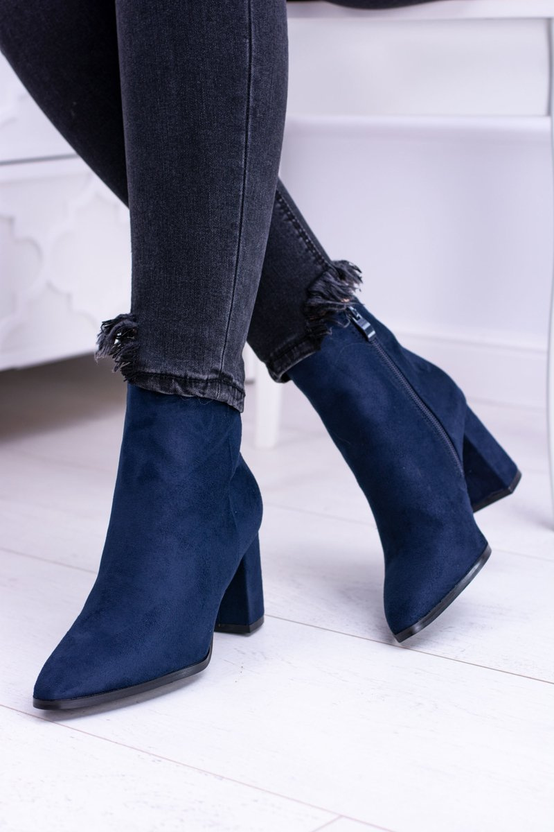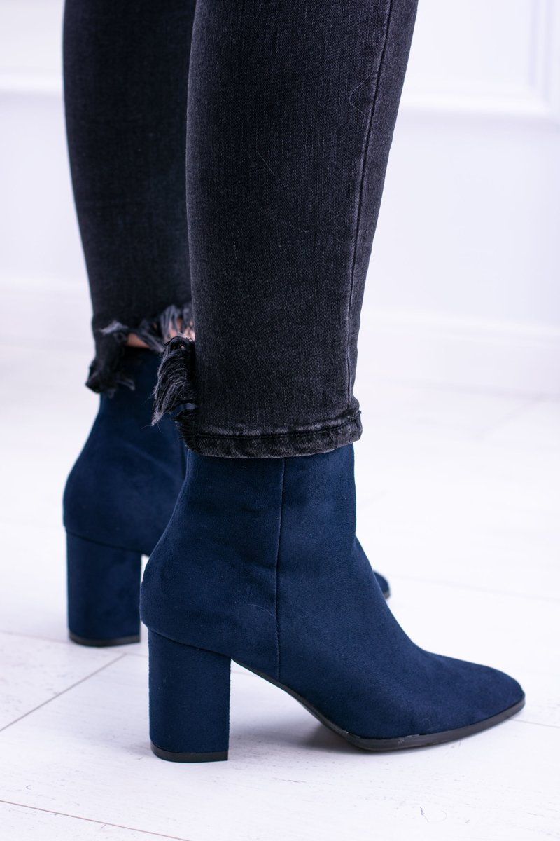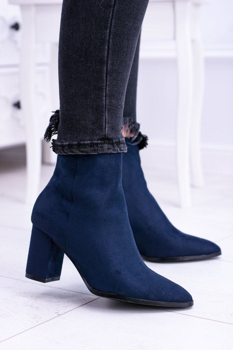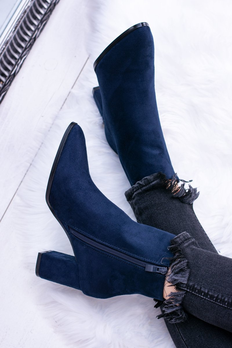 Damskie Granatowe Botki Na Słupku w Szpic Amaltea