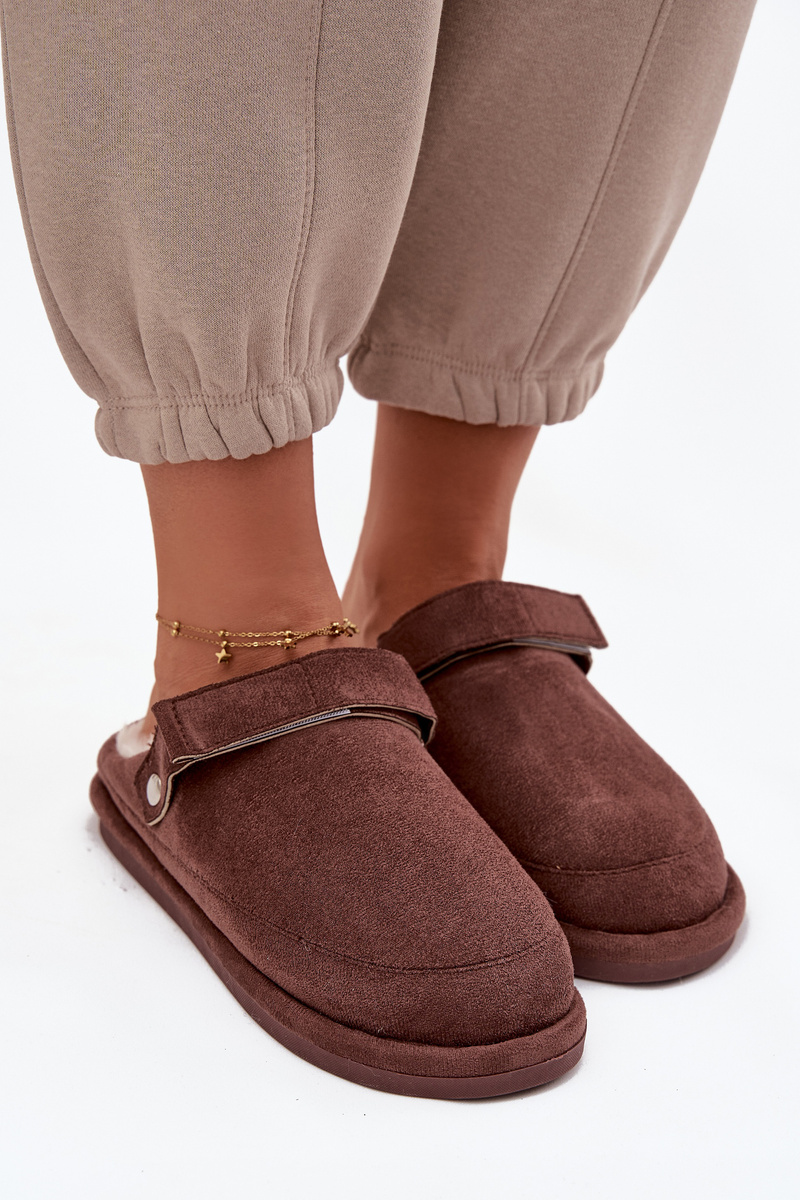 Damskie Kapcie Eko Zamszowe Ocieplane Futerkiem Rzep Czekoladowe Rilena