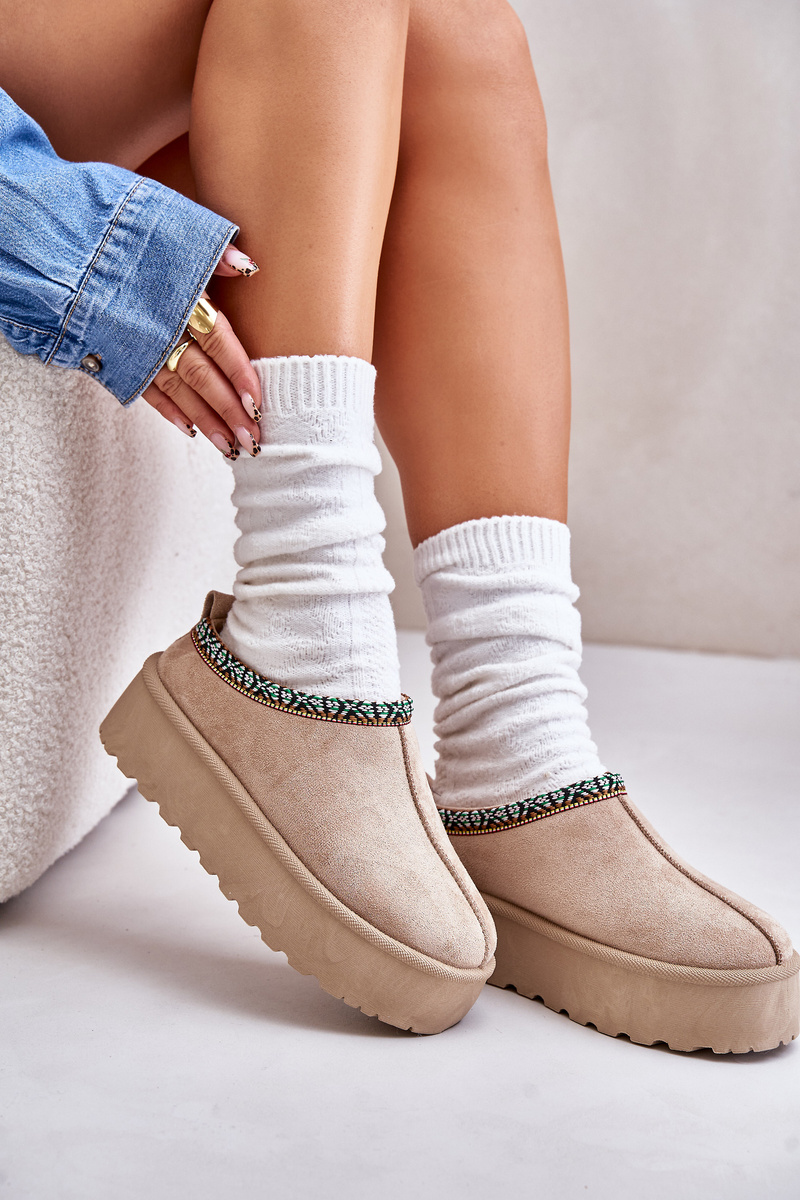 Damskie Kapcie Platforma Haft Beżowe Neroma