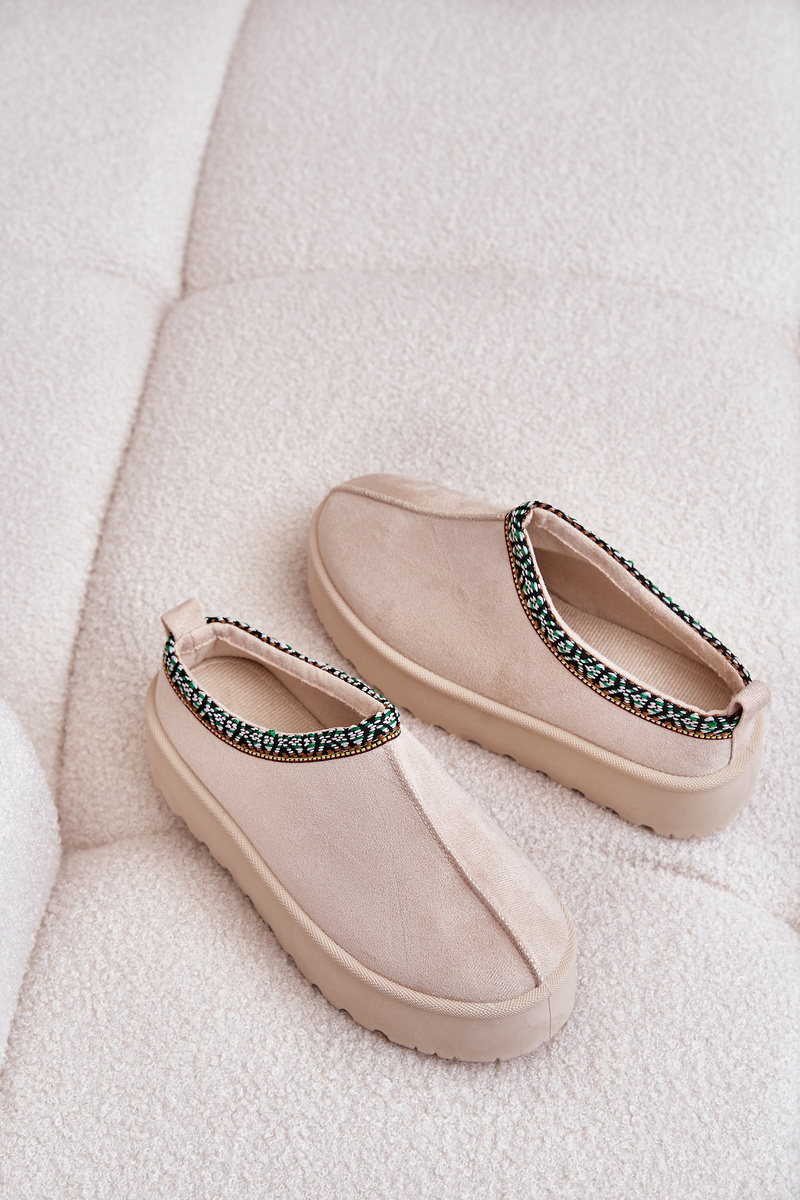 Damskie Kapcie Platforma Haft Jasnobeżowe Neroma