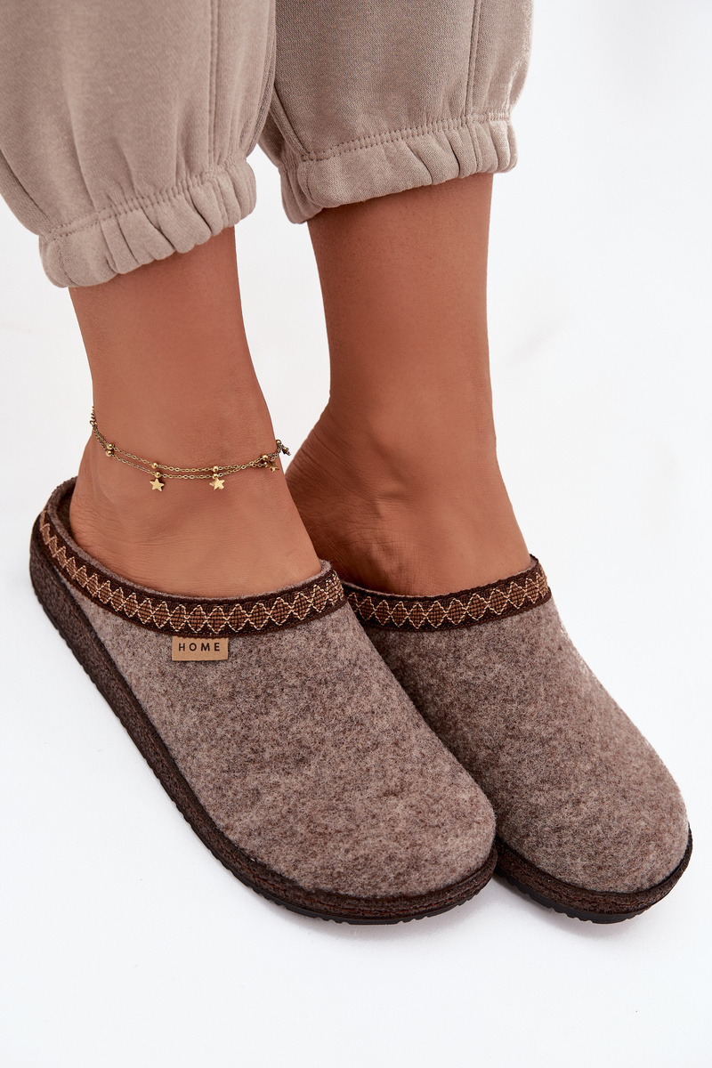 Damskie Kapcie Z Haftem Ciemnobeżowe Inblu NL000009