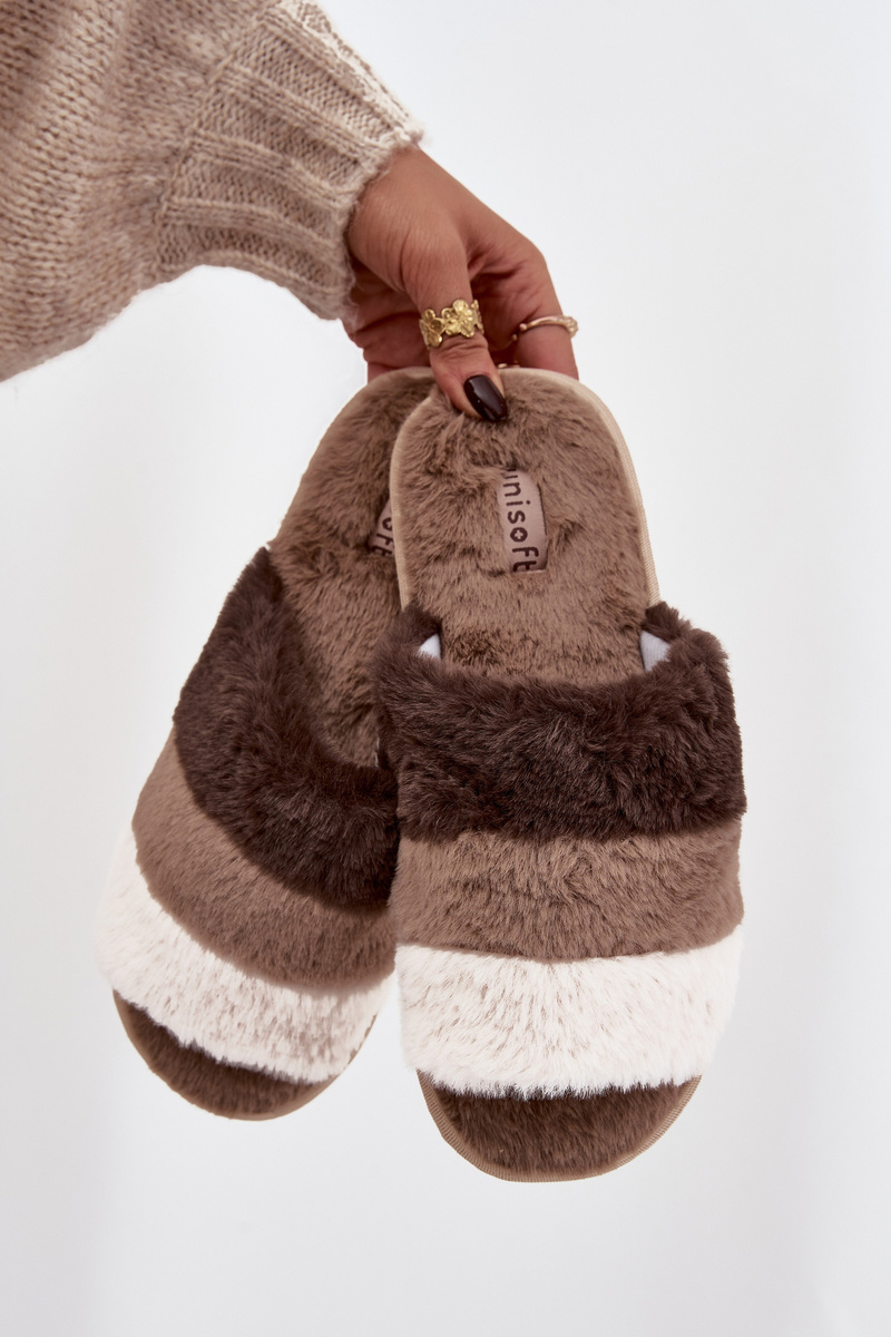 Damskie Kapcie Z Paskami Futrzane Brązowe Tahlisse