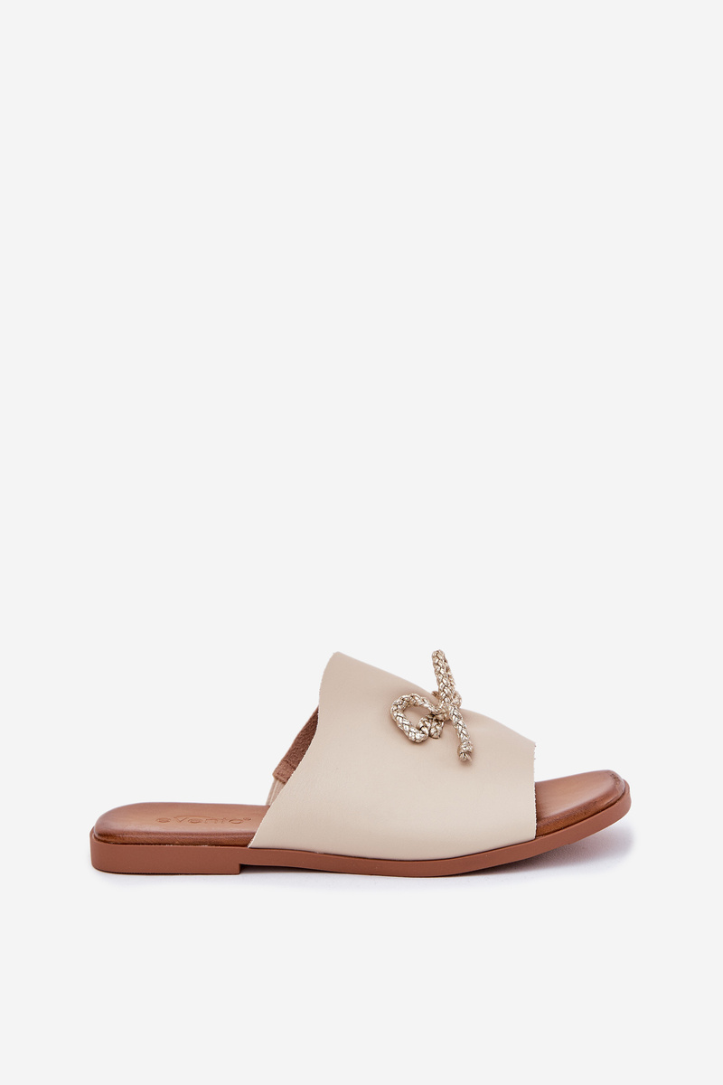 Damskie Klapki Eko Skórzane Płaskie Ozdobne Wiązanie Beżowe Norela