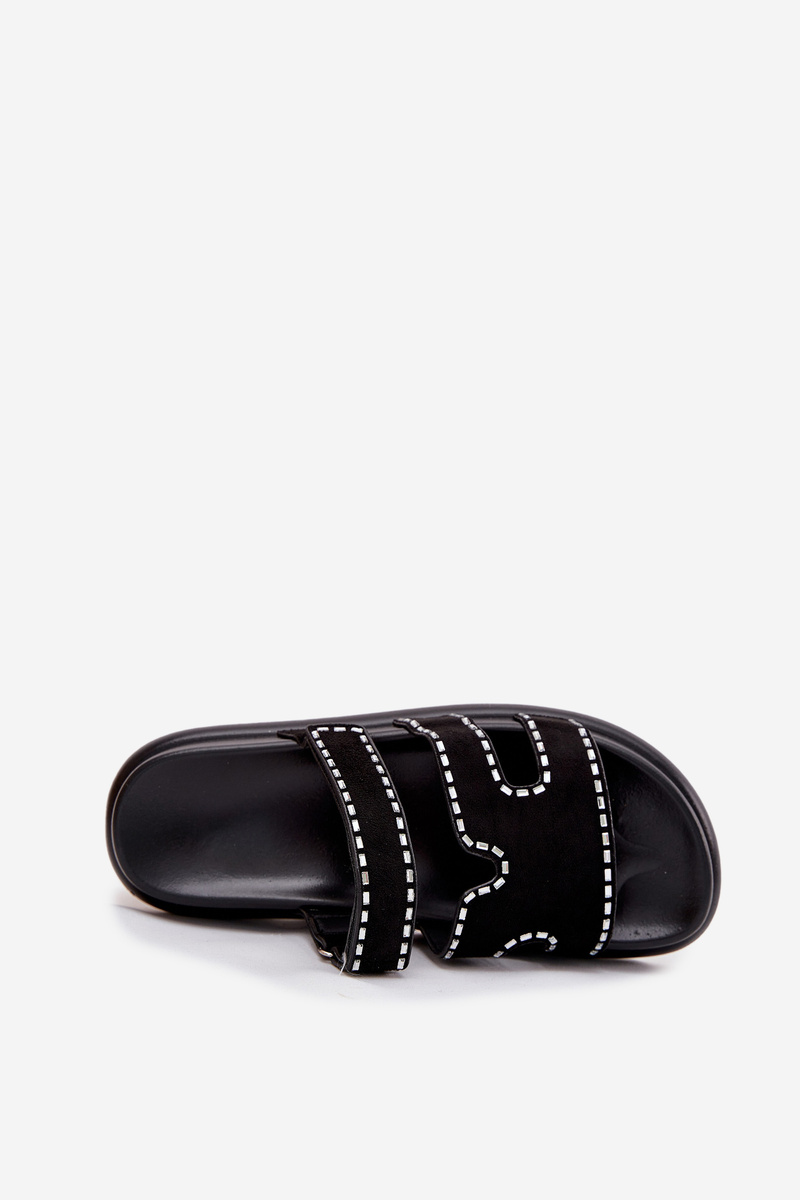 Damskie Klapki Eko Zamsz Na Platformie Zdobione Czarne Delyna