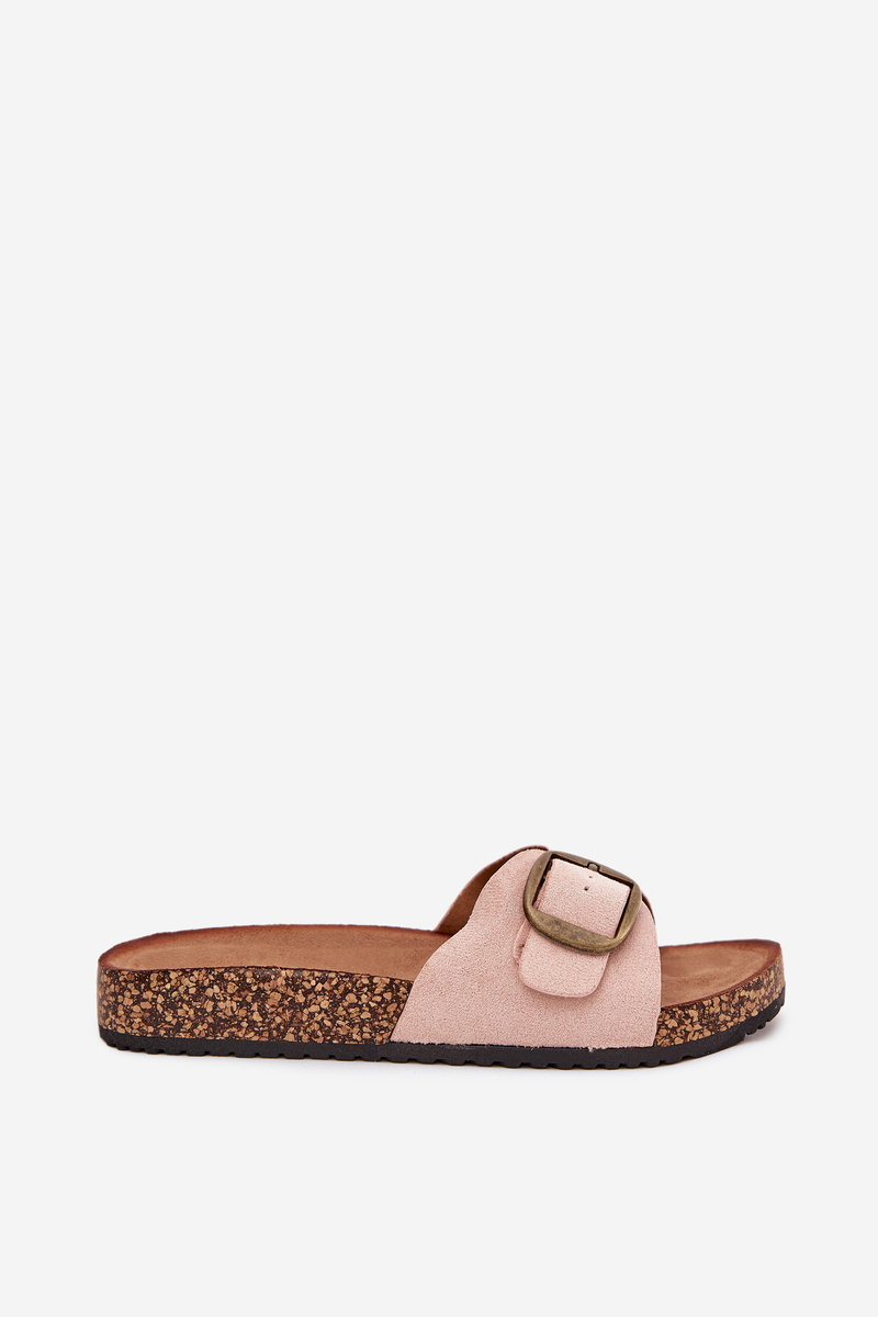 Damskie Klapki Eko Zamszowe Z Klamrą Korkowa Platforma Różowe Zavira