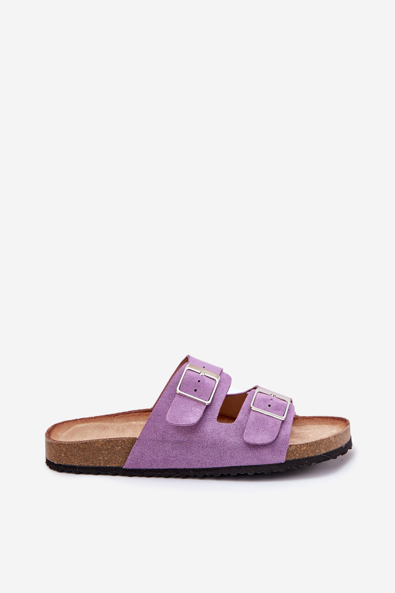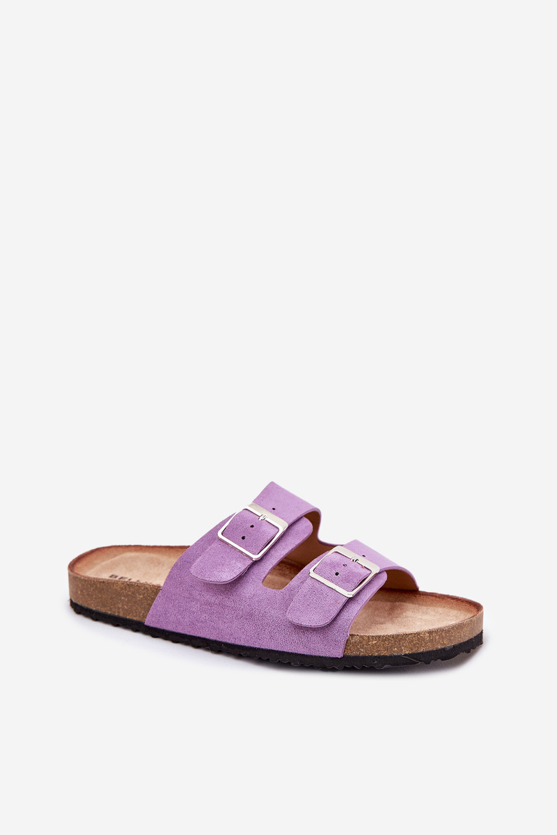 Damskie Klapki Korkowa Platforma Klamry Fioletowe Evisolla