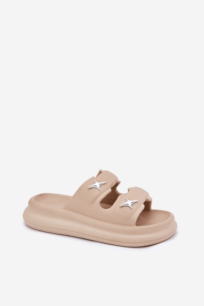 Damskie Klapki Lekkie Piankowe Na Platformie Ciemnobeżowe Falowena