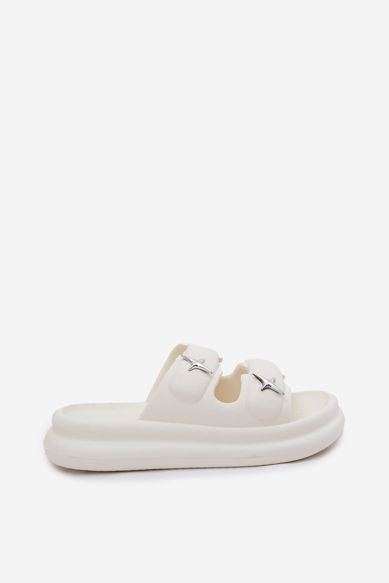 Damskie Klapki Lekkie Piankowe Na Platformie Ecru Falowena