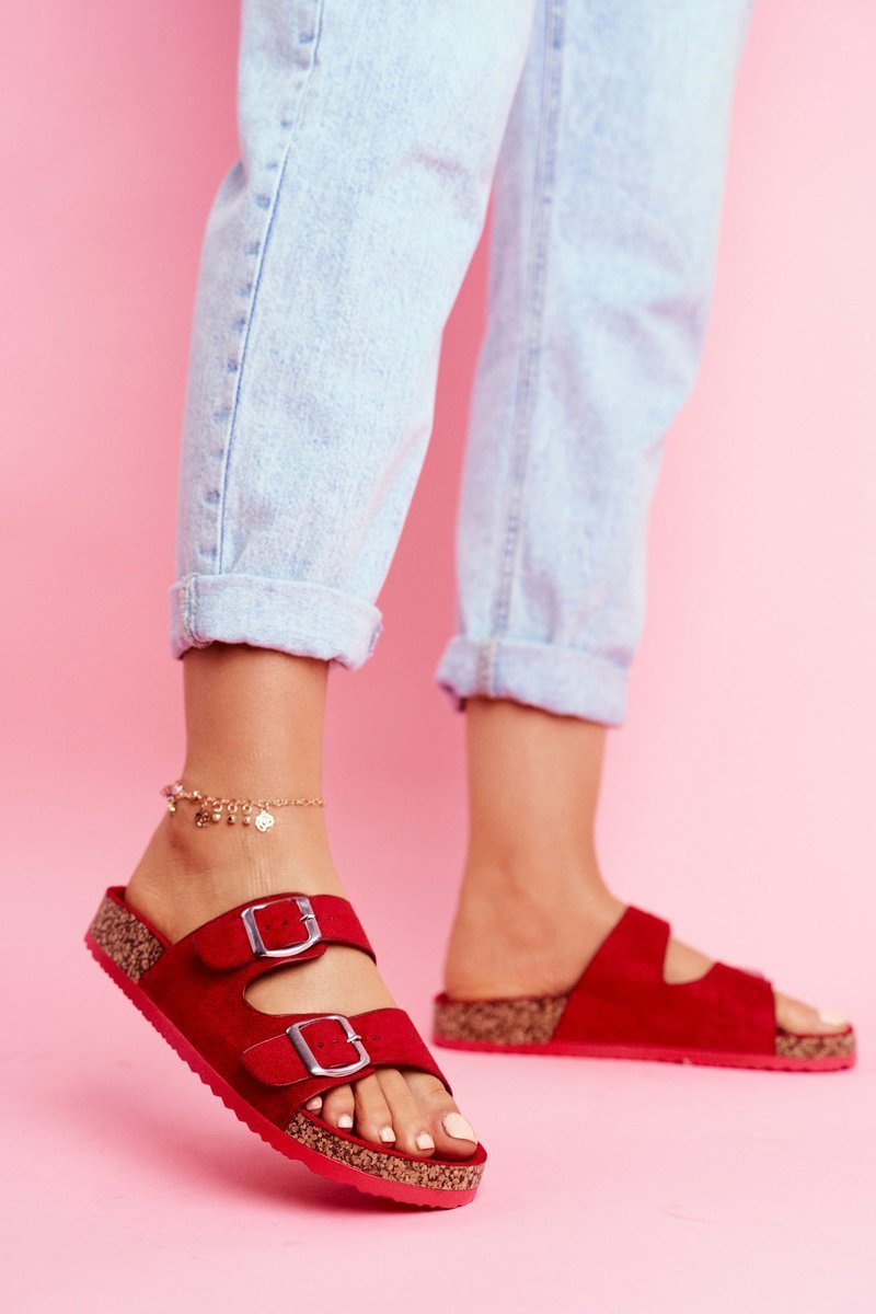 Damskie Klapki Na Korku Z Klamrami Czerwone Si Senor