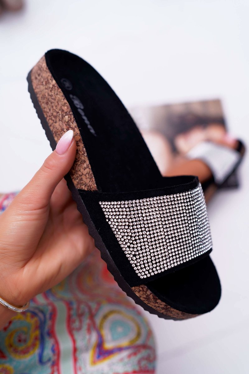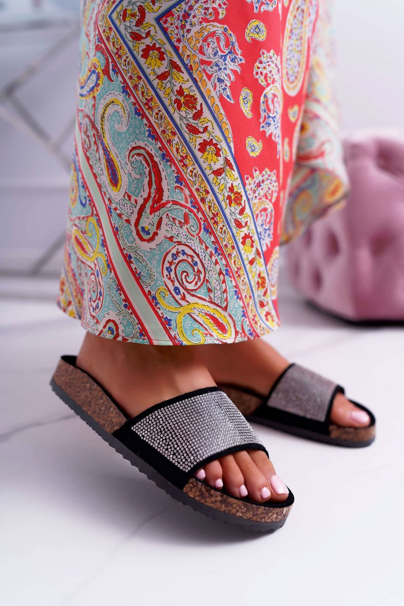 Damskie Klapki Na Korku Z Kryształkami Czarne Do It!