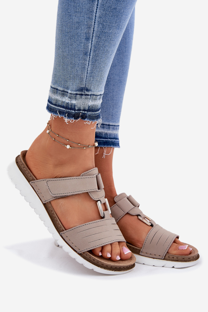 Klasyczne klapki o modnym fasonie pasują do wielu stylizacji! Idealne dla każdej kobiety ceniącej sobie komfort i wygodę na co dzień. Idealne na cieplejsze dni. Klapki od marki INBLU. Wykonane z wysokiej jakości eko skóry. Osadzone na subtelnym koturnie. Dzięki zapięciu na rzep klapki łatwo dopasowują się do tęgości stopy. Skórzana, profilowana wkładka dostosowuje się do naturalnego kształtu stopy, oferując wygodę przez cały dzień. Elastyczna podeszwa zapewnia stabilność oraz sprężystość, co sprawia, że klapki są wygodne w codziennym użytkowaniu. To świetny wybór do letnich stylizacji, łączący funkcjonalność z nowoczesnym wyglądem.
