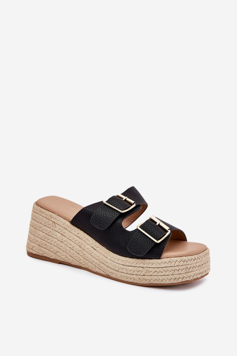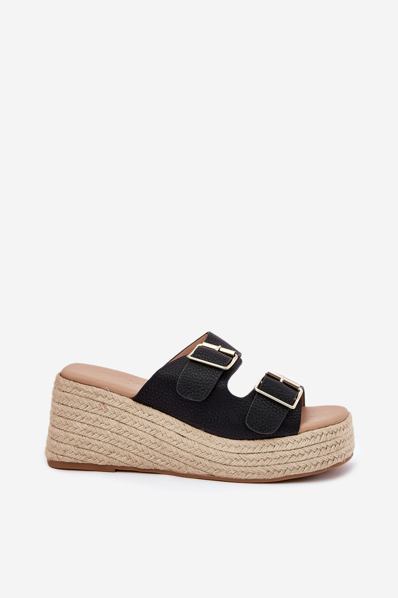 Damskie Klapki Na Koturnie Z Plecionką Klamry Czarne Pasinea