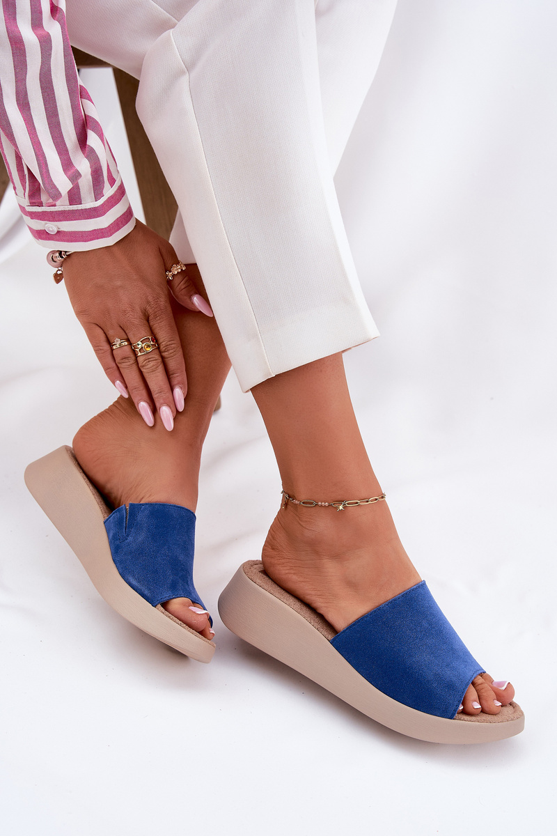 Damskie Klapki Na Koturnie Zamszowe Niebieskie Panto Fino RR267041