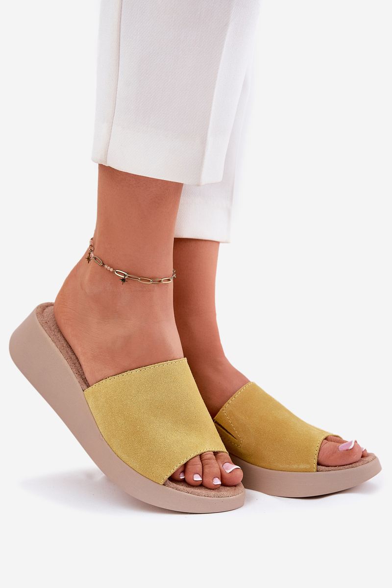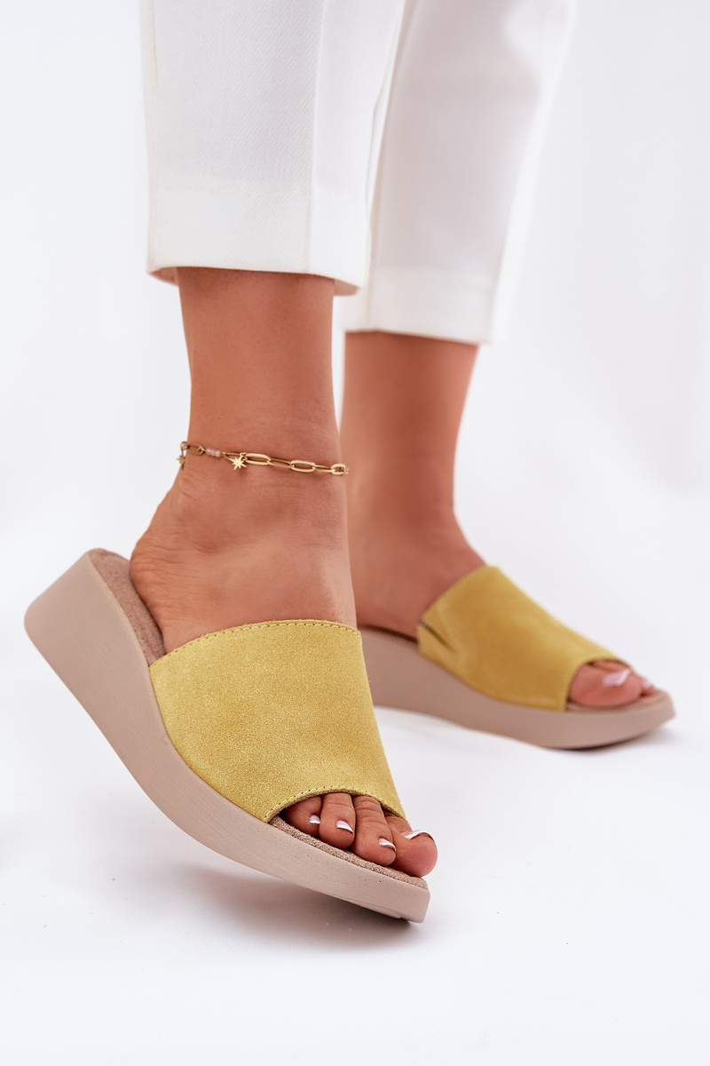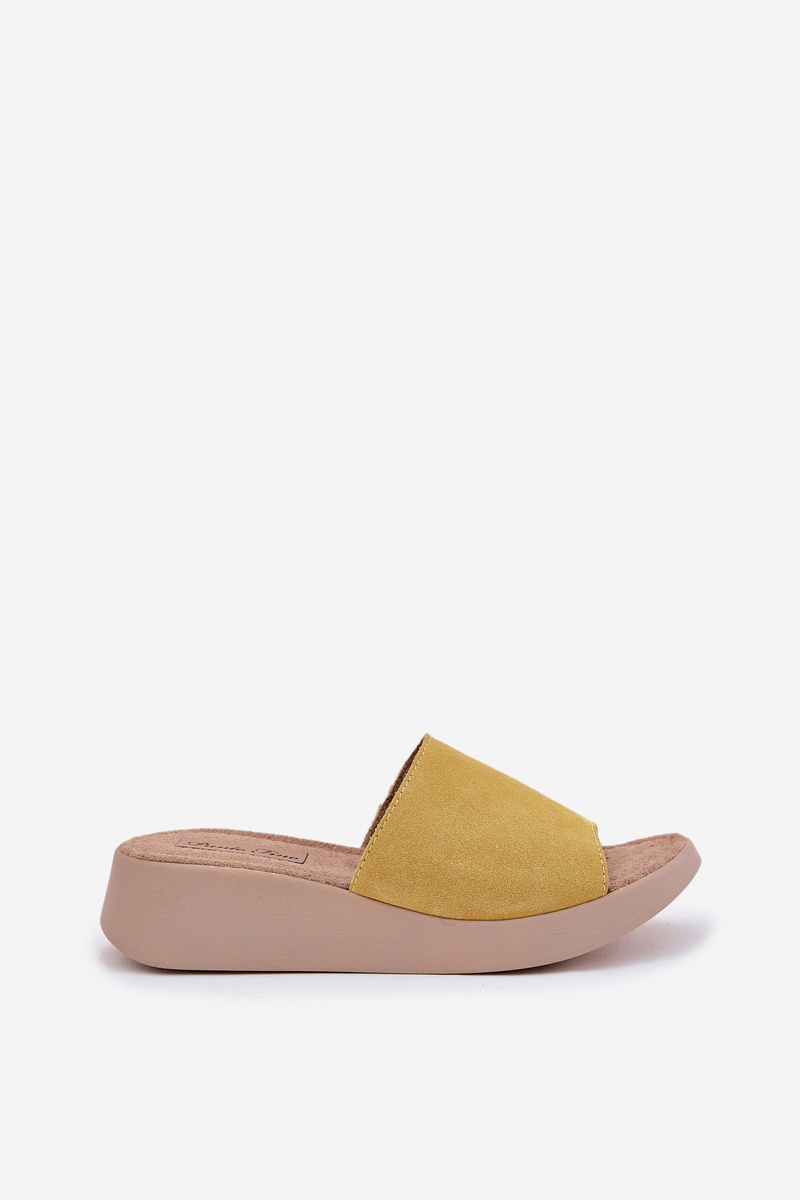 Damskie Klapki Na Koturnie Zamszowe Żółte Panto Fino RR267038