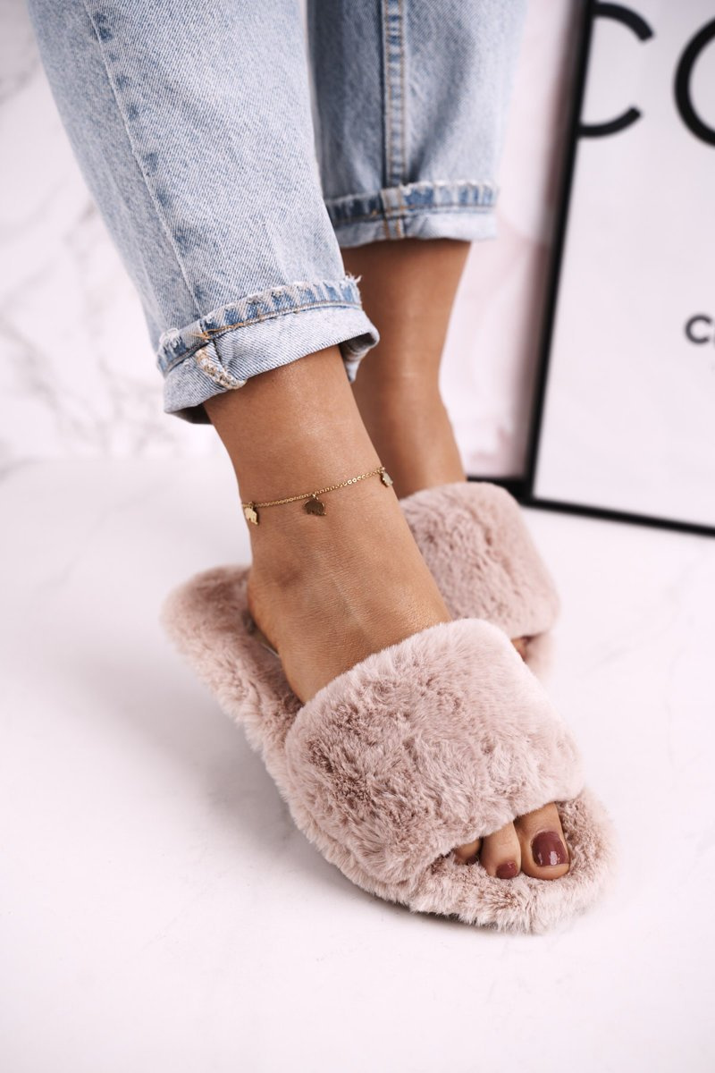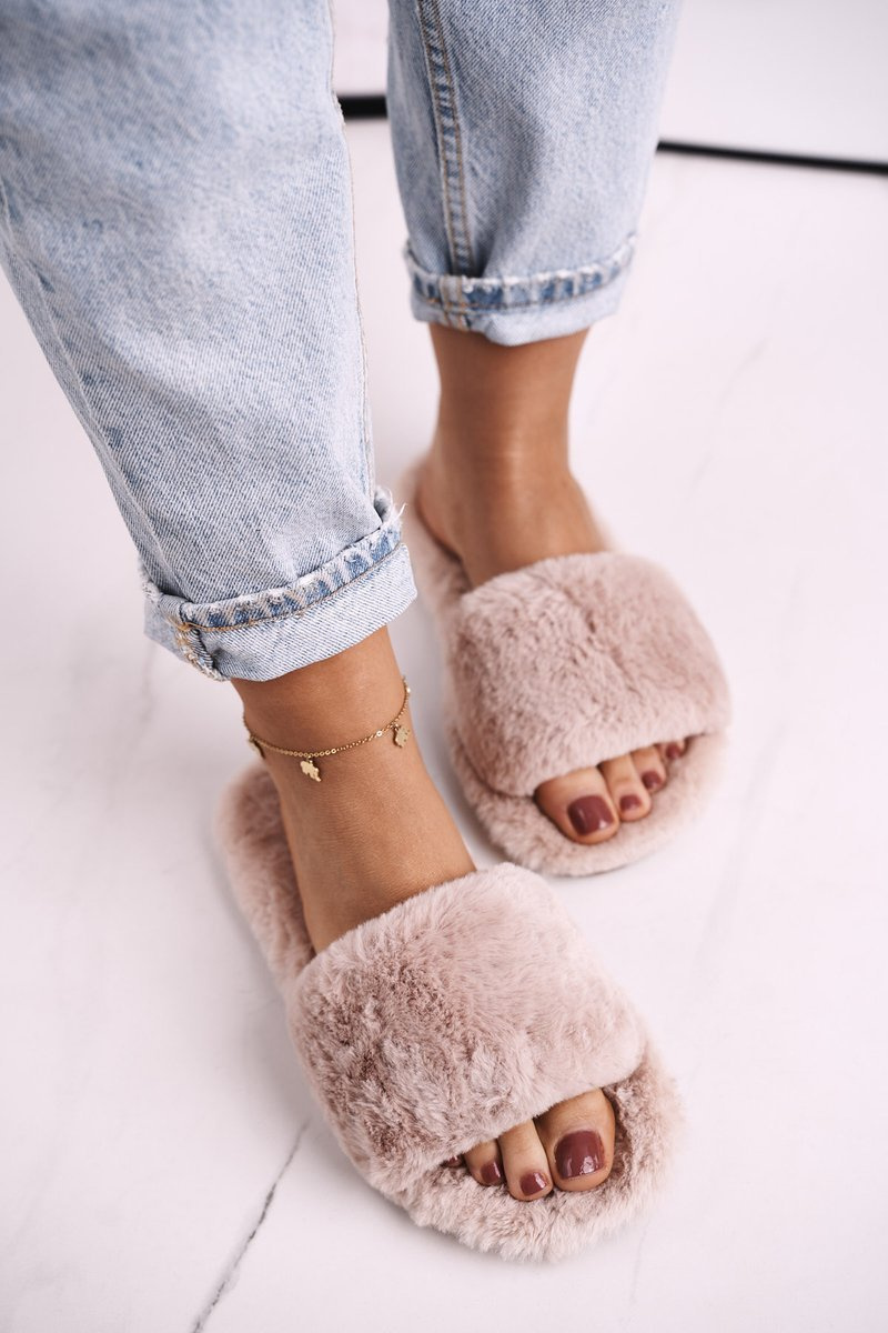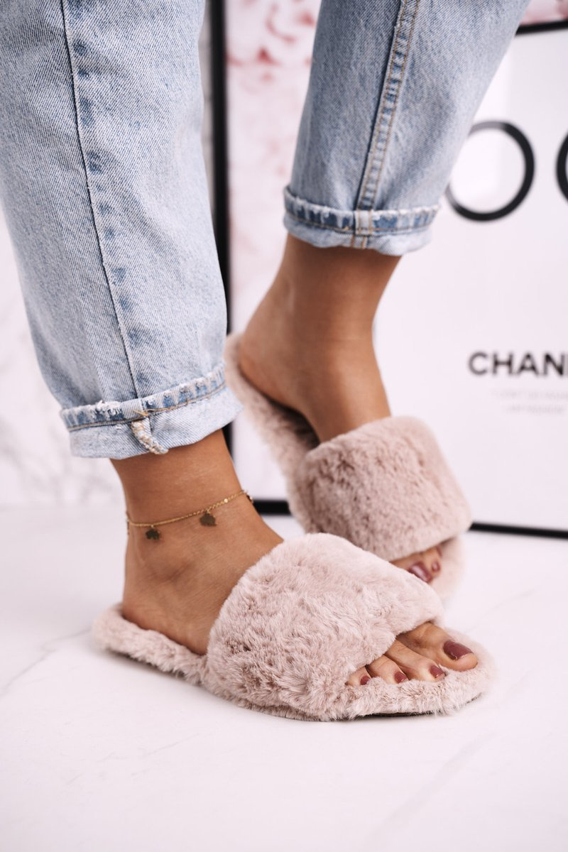 Damskie Klapki Papcie Futrzane Jasny Brąz Cold Days