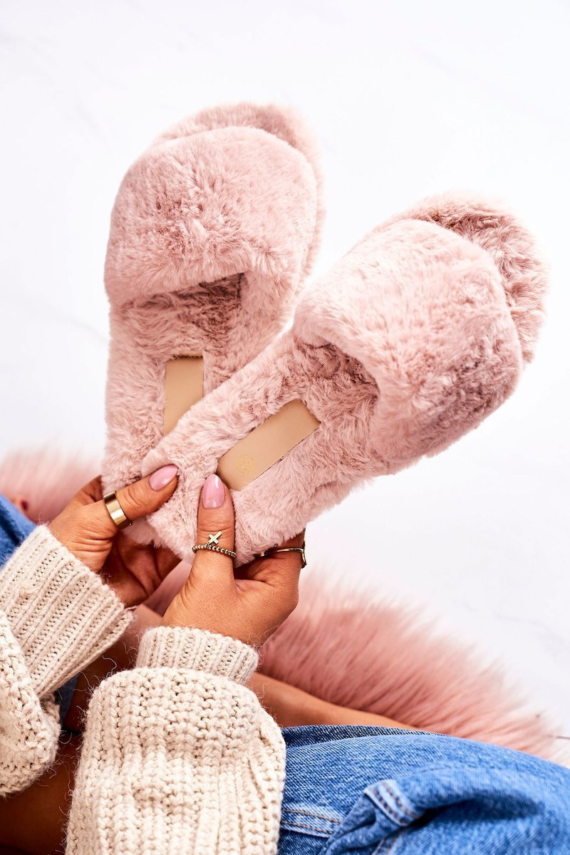 Damskie Klapki Papcie Futrzane Różowe Cold Days
