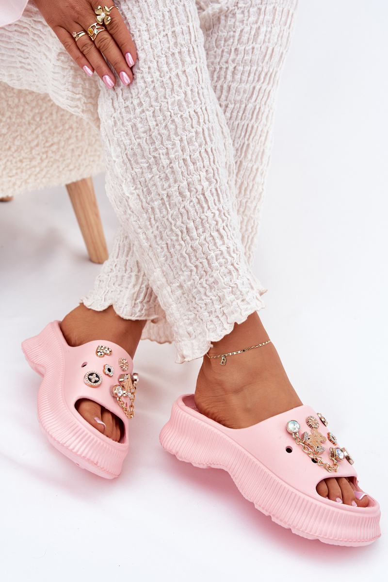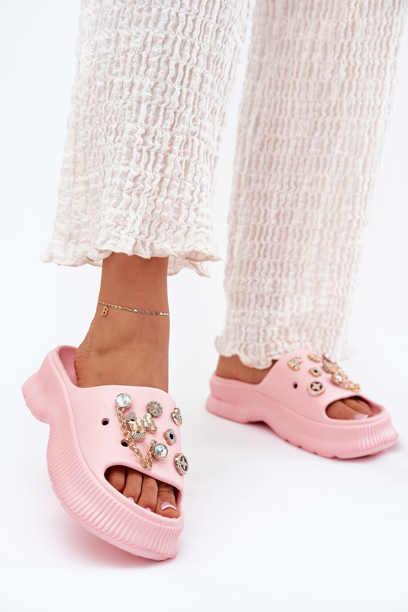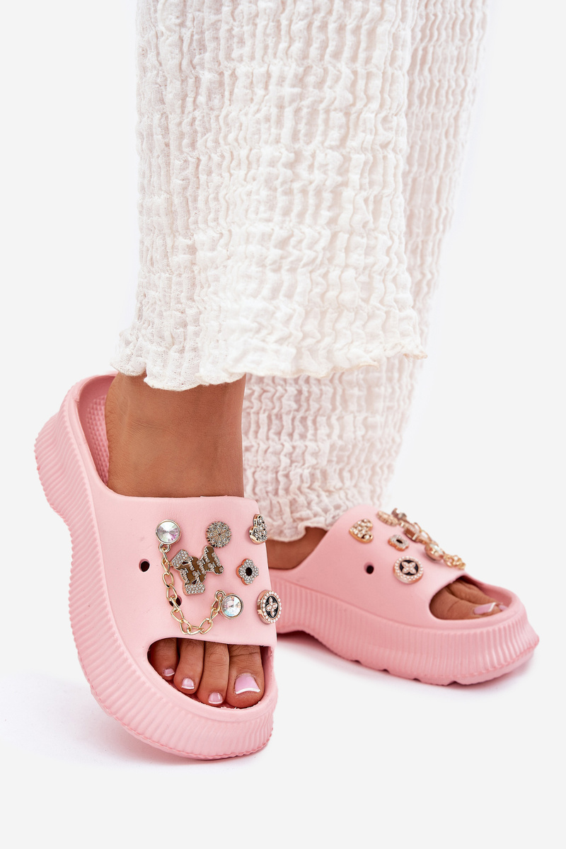 Damskie Klapki Piankowe Złote Przypinki Różowe Hortiana
